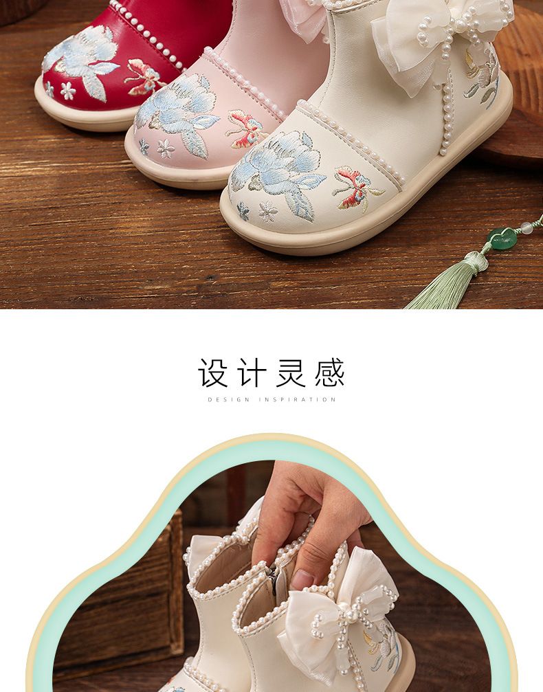 子供用漢服布靴、中国風漢服靴、唐装女児靴、古装風老北京布靴、刺繍靴