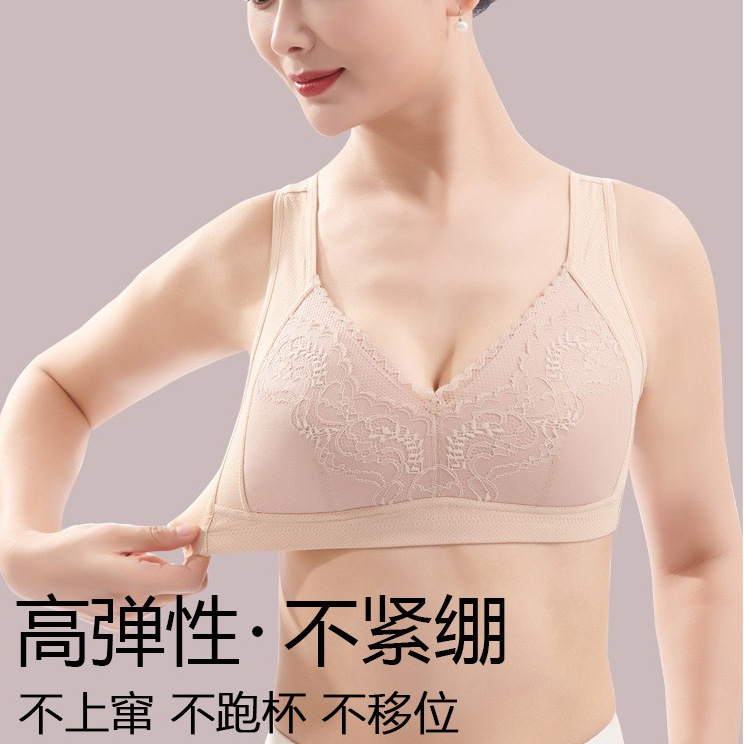 妈妈内衣大码无钢圈聚拢防下垂中老年背心式纯棉文胸透气无痕胸罩