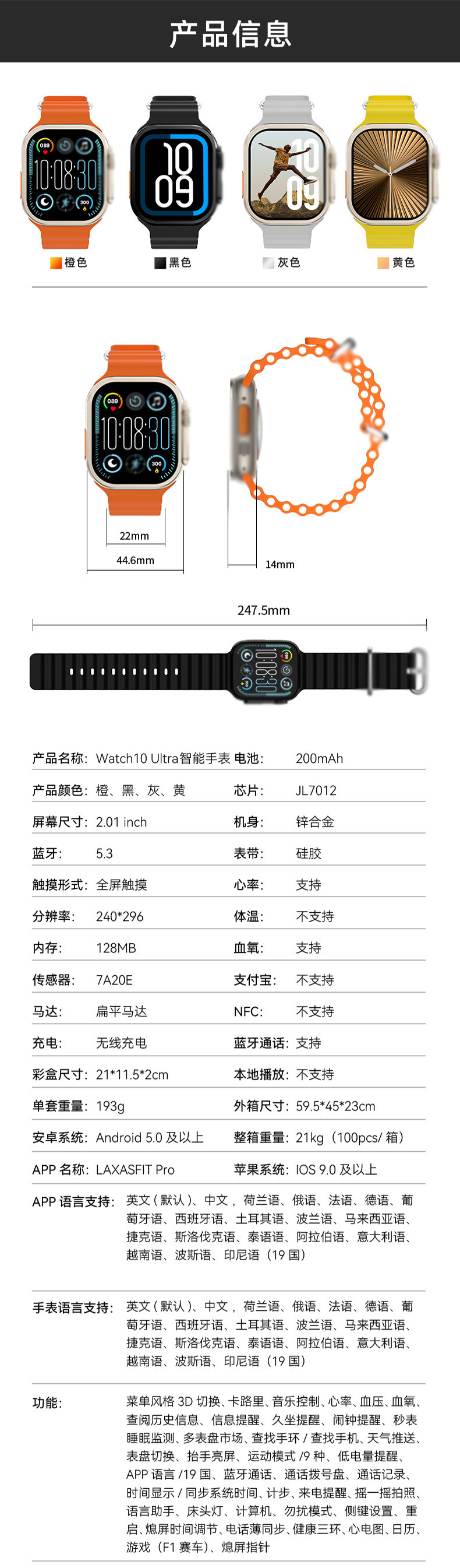 颜色 新款S10Ultra黑【49MM全功能】蓝牙通话+消息同步,新款S10Ultra橙【49MM全功能】蓝牙通话+消息同步,S9黑【多功能】消息同步+无线充电,S9银【多功能】消息同步+无线充电