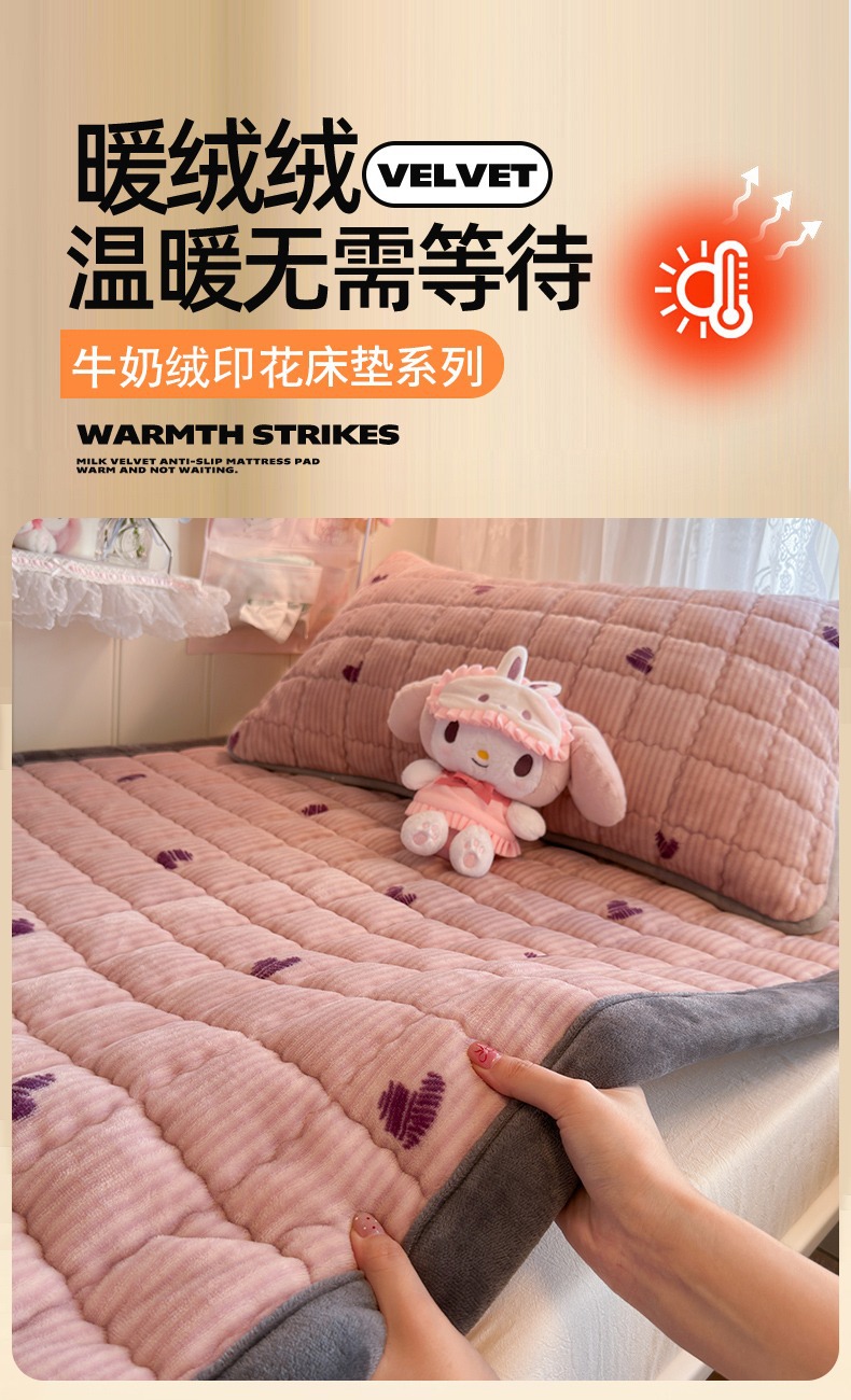 冬季加厚牛奶绒床褥垫单人宿舍床垫软垫子珊瑚绒夹棉床单加绒床盖