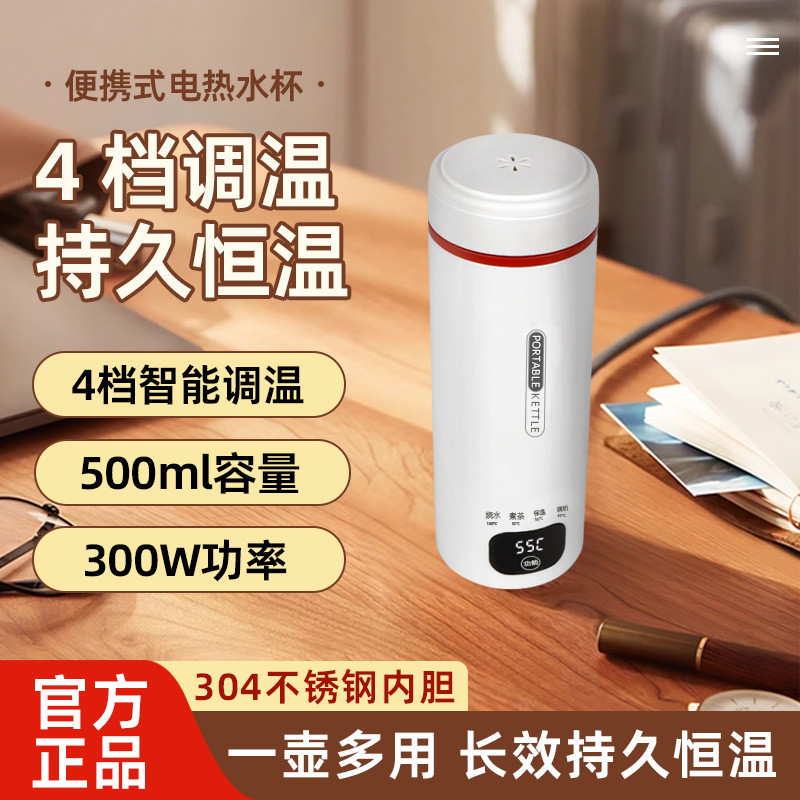 新しい電気加熱ウォーターカップ、ポータブル旅行用ウォーターカップ、断熱自動オールインワン寮ケトル、外出用