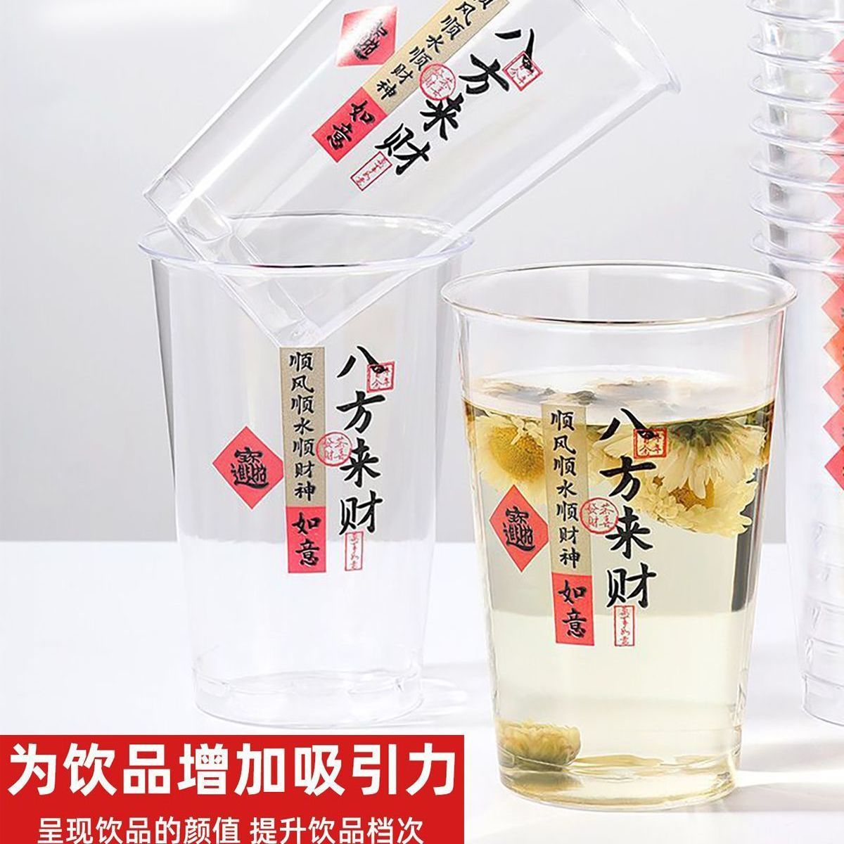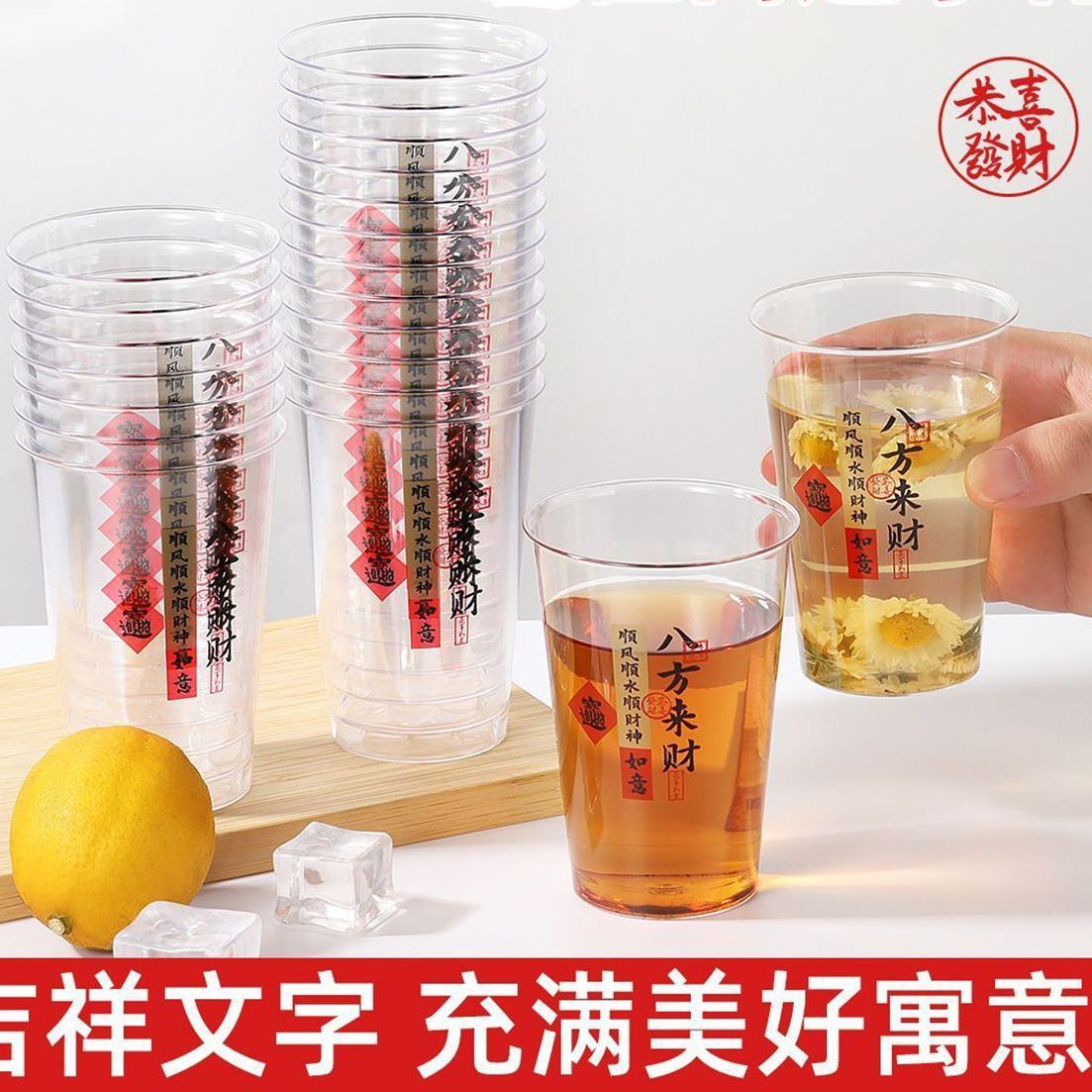 一次性食品级材质八方来财航空杯高档透明接待硬质水杯