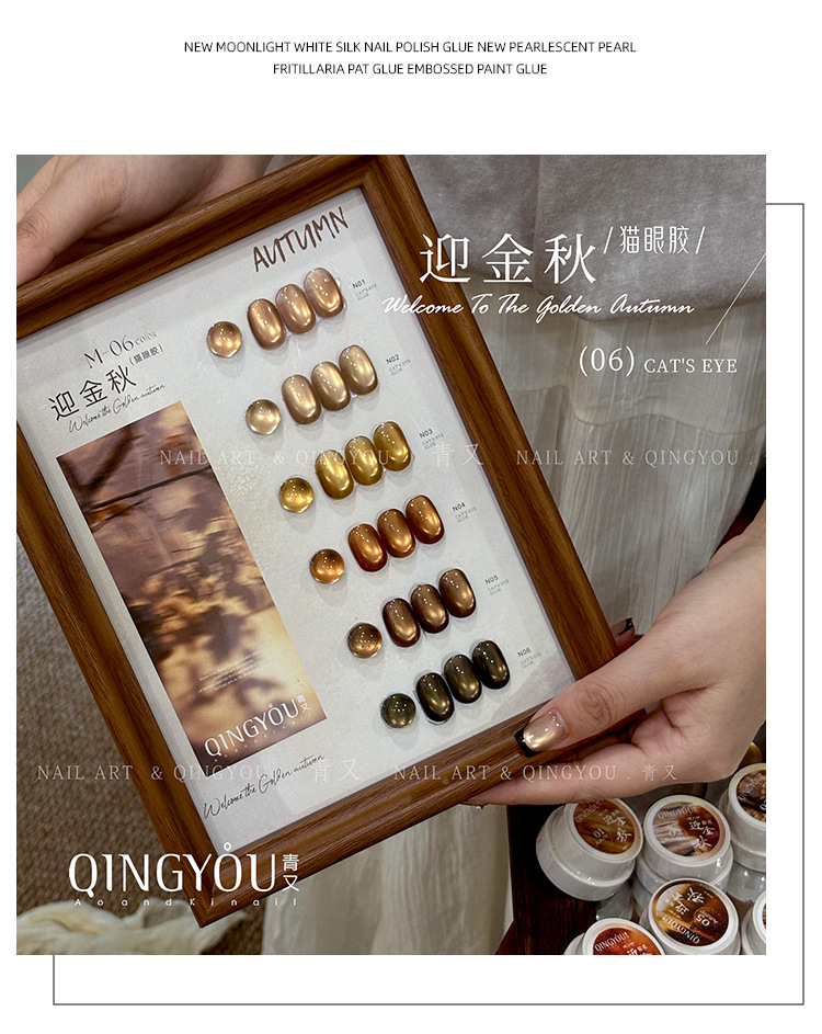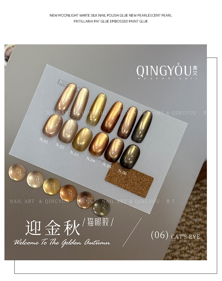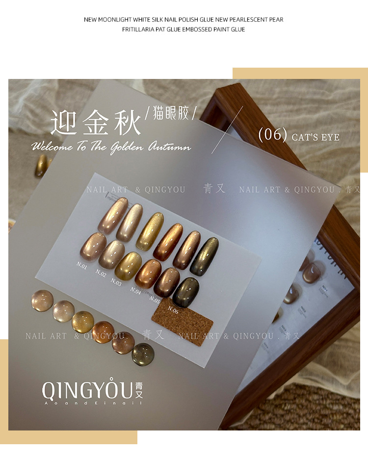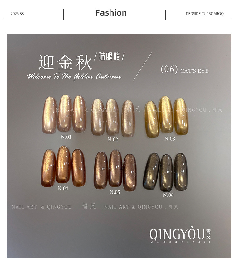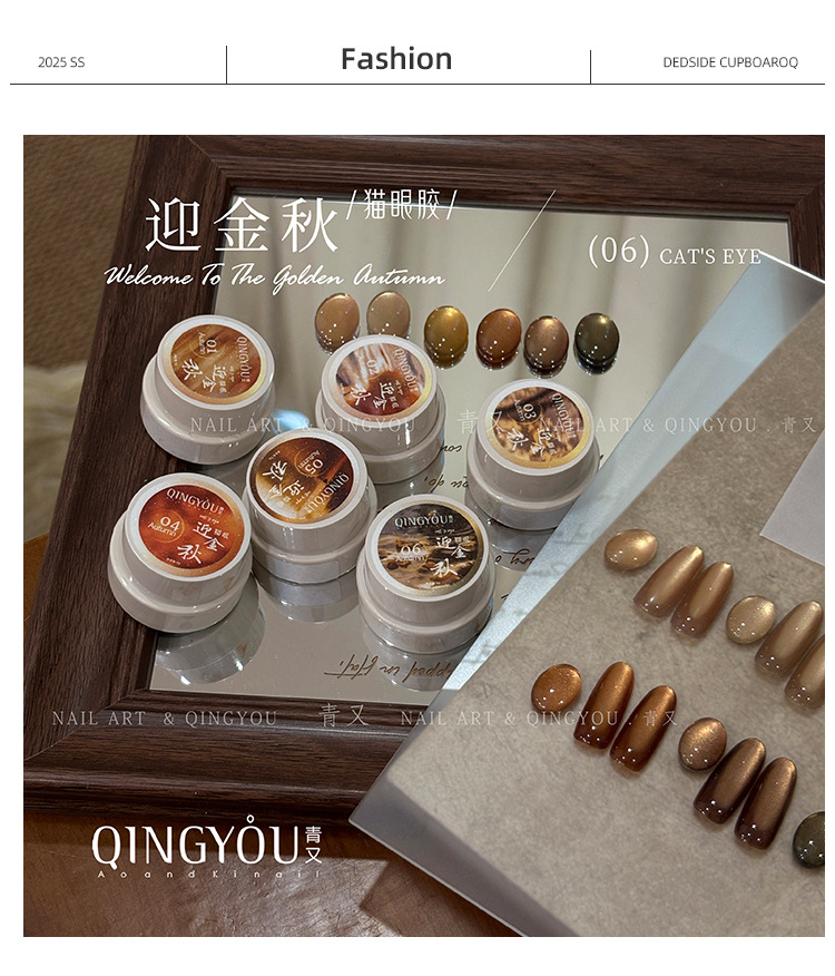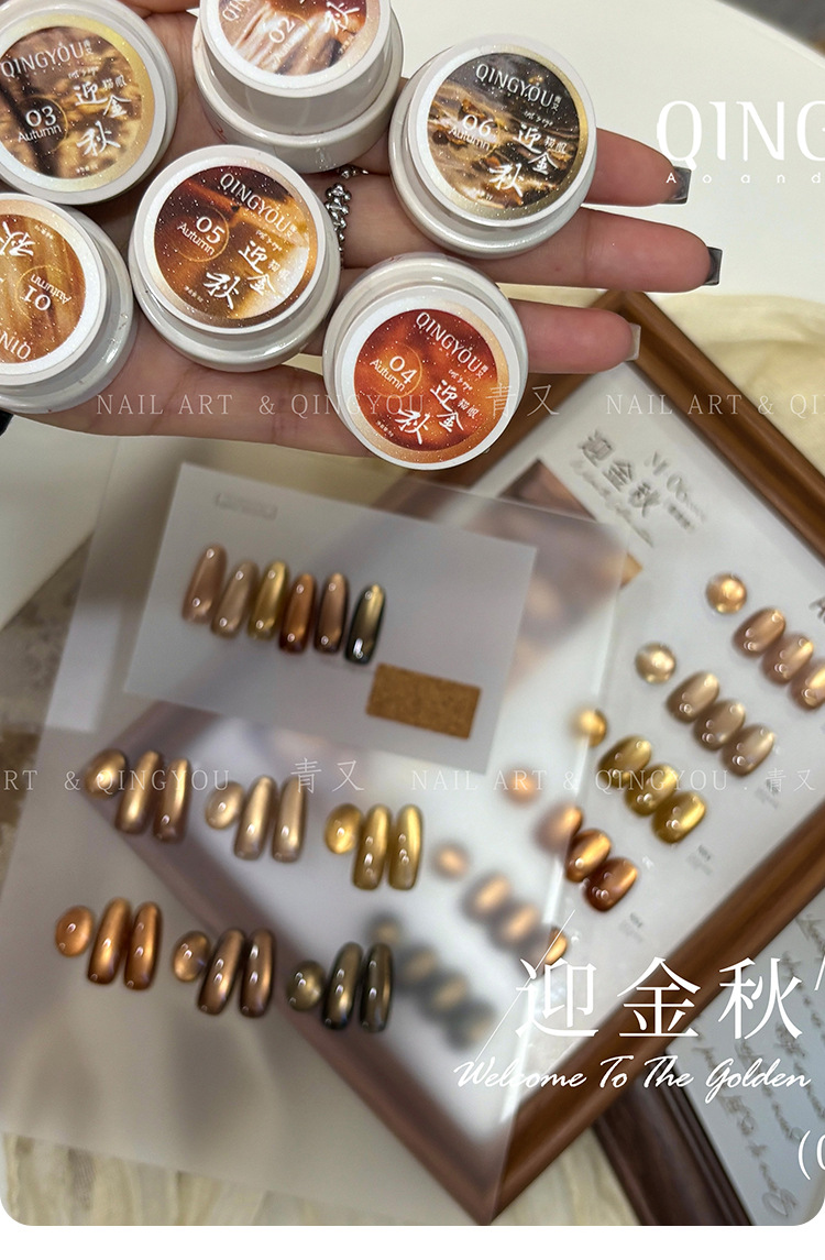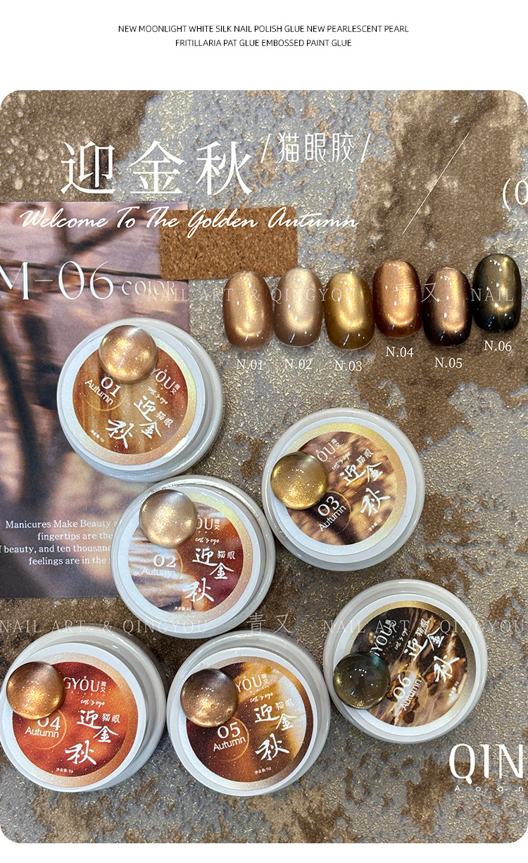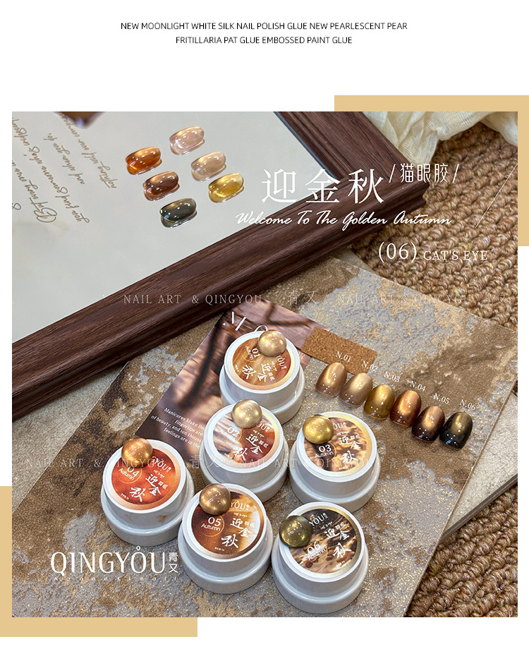 秋冬新款焦糖琥珀落日金秋猫眼系列轻奢显白美拉德色玻璃珠甲油胶