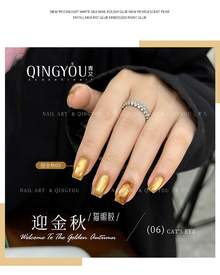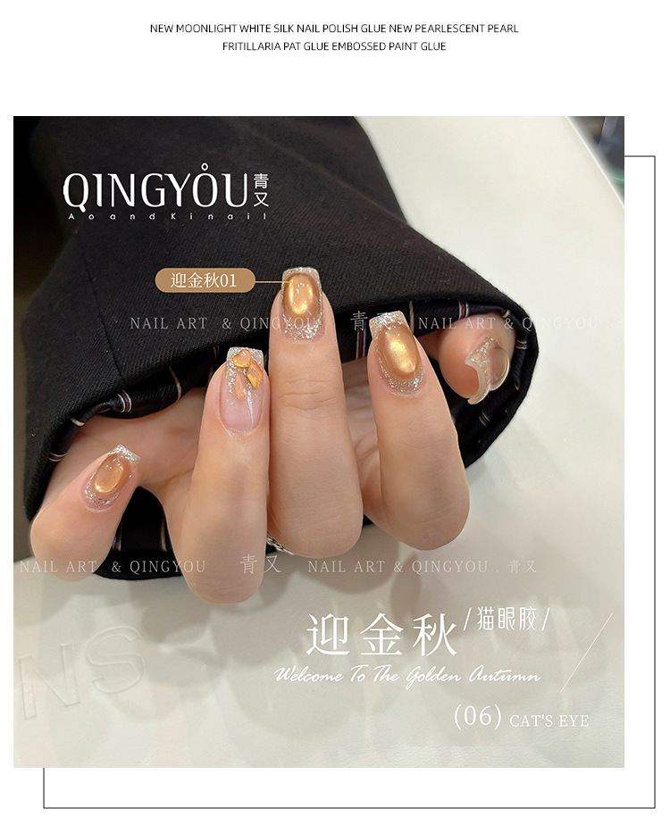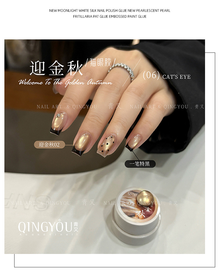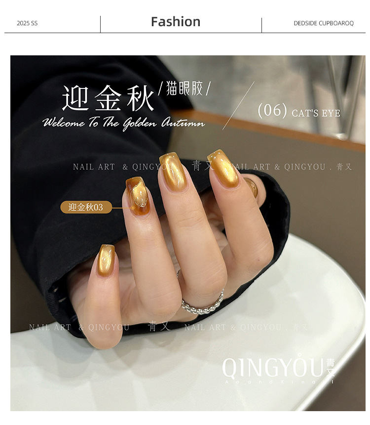 ネイルアート新作ゴールドブラウン琥珀系キャットアイネイルポリッシュ秋冬新作ガラスビーズ結晶石バーストネイルサロン専用