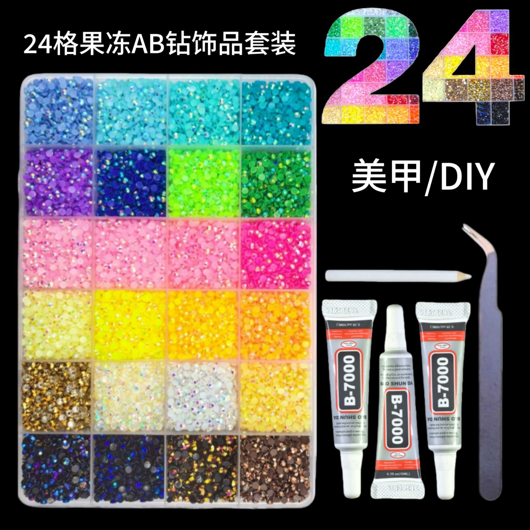 亚马逊热销24格美甲饰品钻套装 大容量树脂钻AB异形钻diy美甲用品