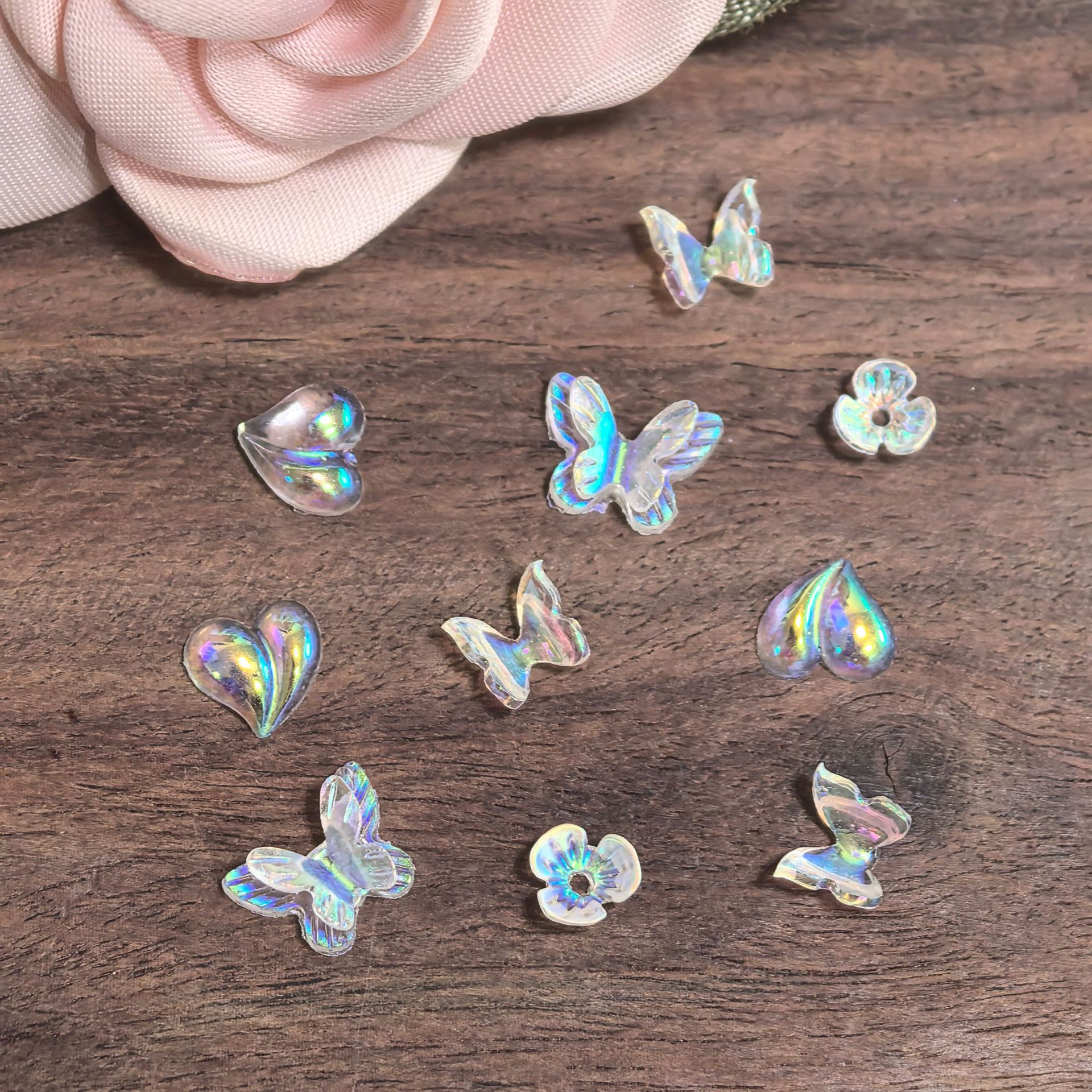ネットセレブ人気氷透明ABカラーネイルアートアクセサリーベアラブミックスバタフライパッチ立体装飾アクセサリー
