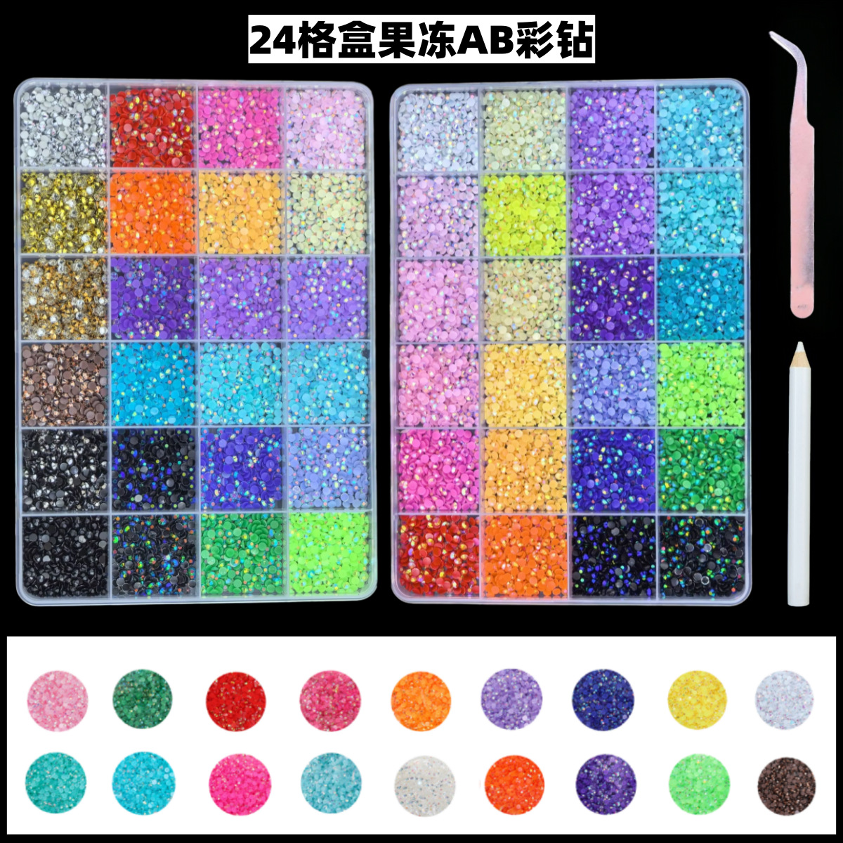 亚马逊热销24格美甲饰品AB圆形彩钻套装diy美甲眼妆装饰品