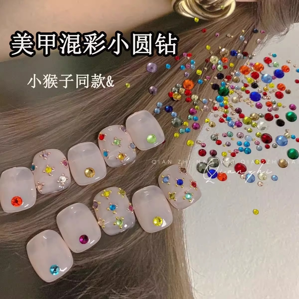 人気のカラフルなフラットダイヤモンド、小さなラウンドダイヤモンド、インターネットセレブのミックスネイルアートアクセサリー、大小ミックスガラスダイヤモンド、フラッシュジュエリー