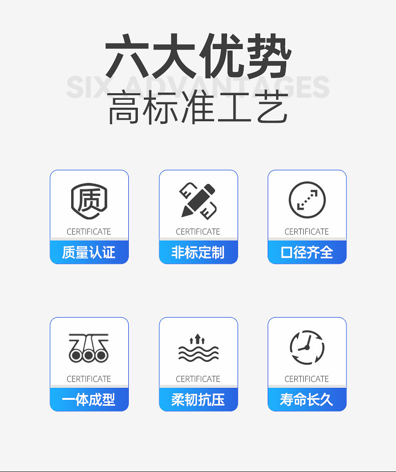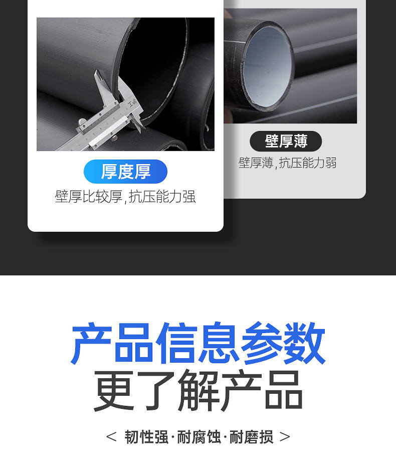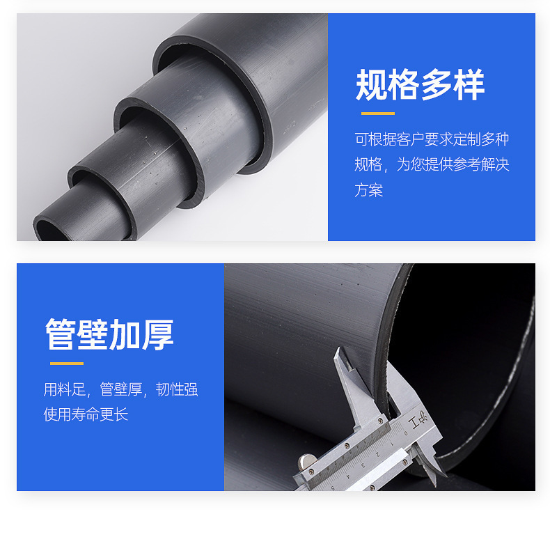 公称外径 20x2.3,20x2.0,25x2.3,32X3,32X2.4,40X3.7,40X3,40X2.4,50X.4.6,50X3.7,50X3.0,63X5.8,63X4.7,63X3.8,75X6.8,75X5.6,75X4.5,90X8.2,90X6.7,90X5.4,90X4.3,110X10,110X8.1,110X6.6,110X5.3,110X4.2