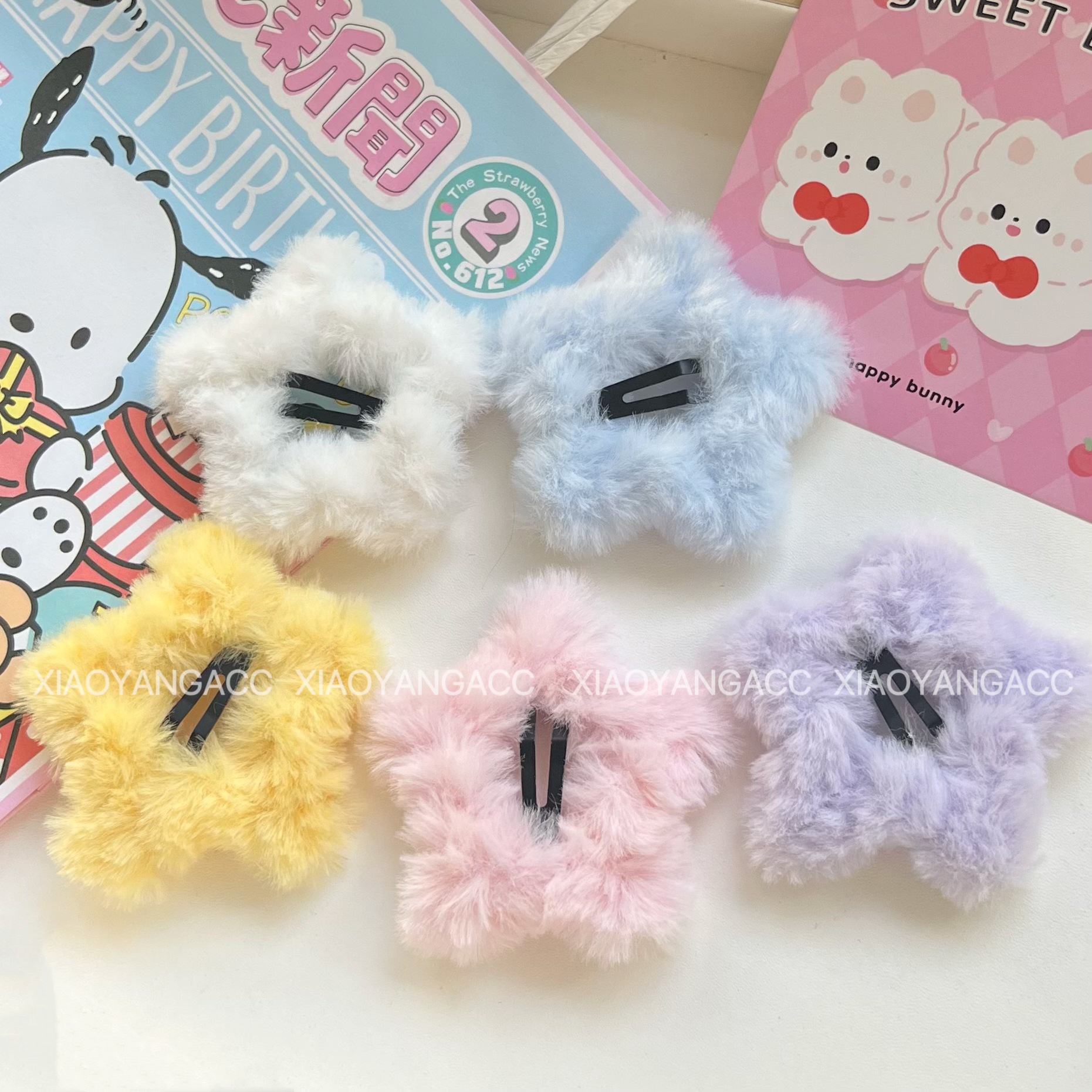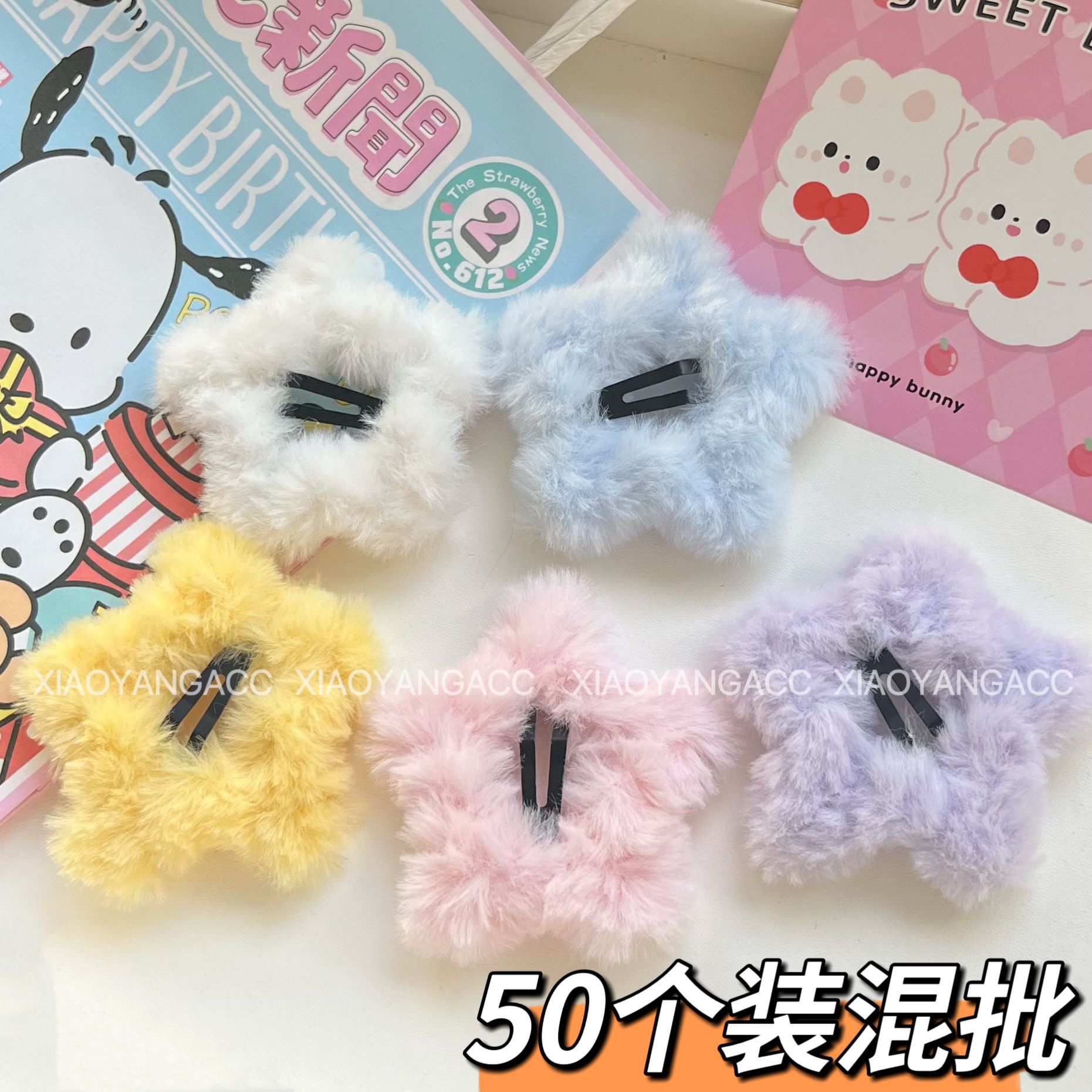 奶乎乎毛绒星星BB夹可爱软萌温柔秋冬毛茸茸五角星发夹少女心边夹