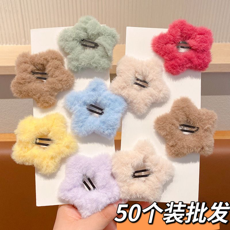 毛むくじゃら米カレー星bbクリップins少女秋冬毛毛五角星髪クリップかわいい髪飾りカード
