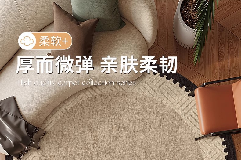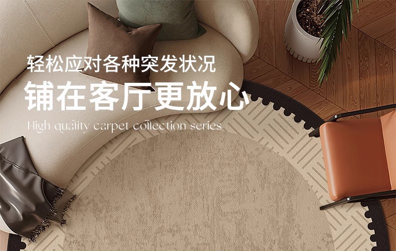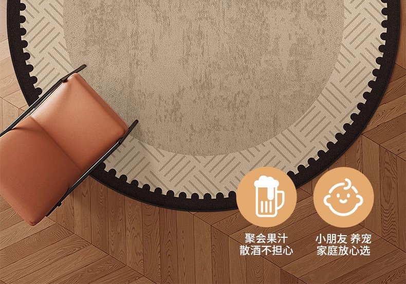 地毯客厅法式圆形地毯高级感沙发茶几毯卧室床边转椅水晶绒地毯