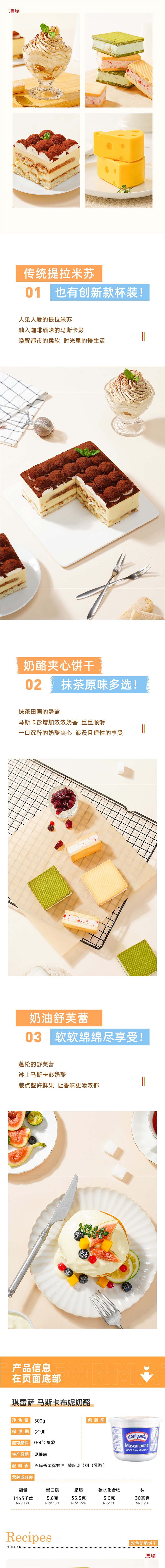 琪雷萨马斯卡彭奶酪提拉米苏奶油芝士马斯卡膨布尼烘焙材料尚巧厨