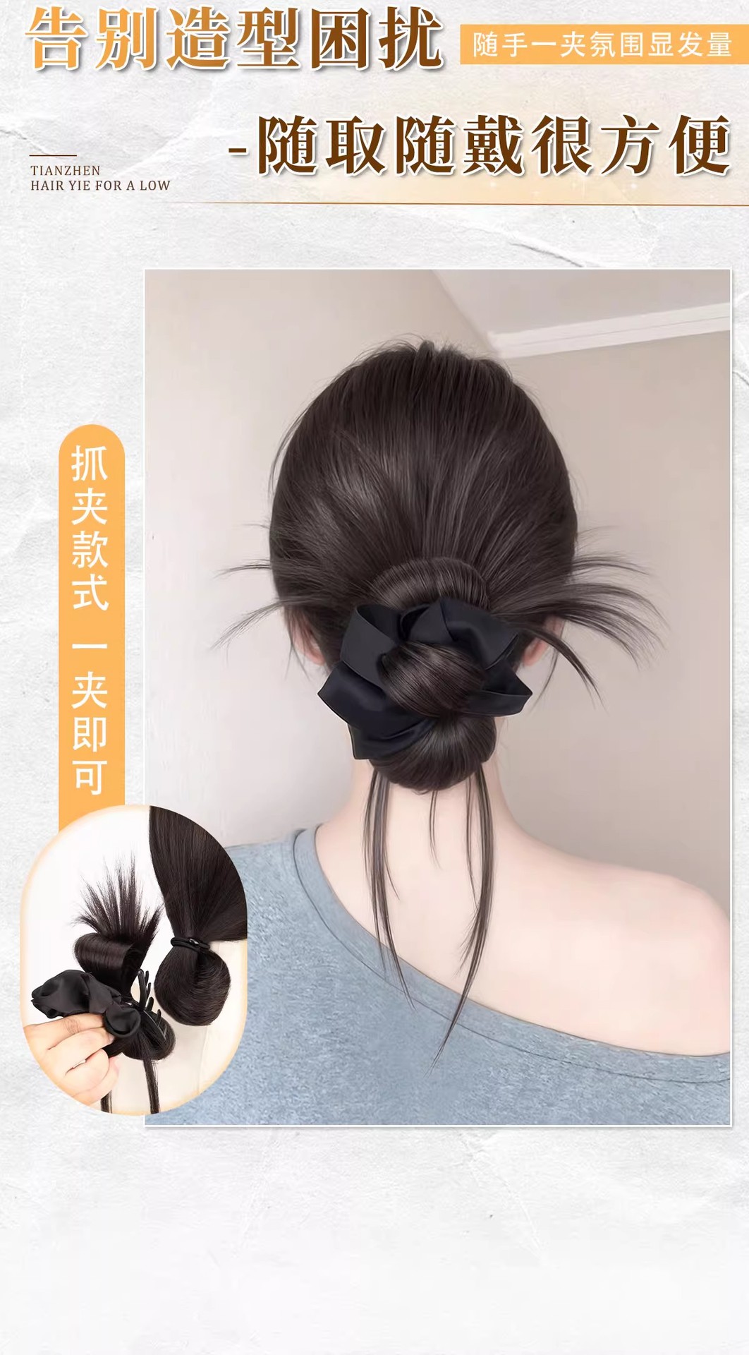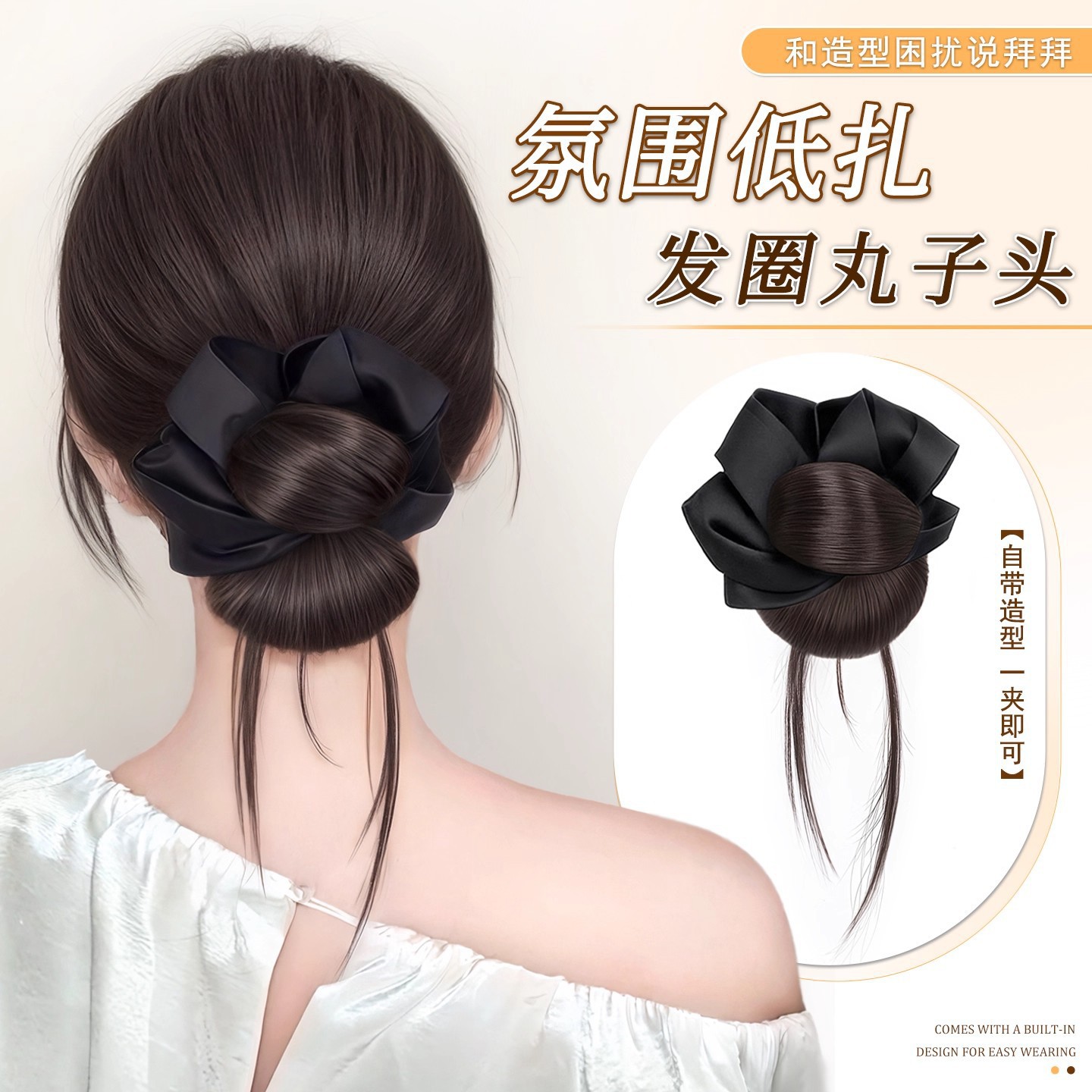 低扎丸子头假发抓夹花苞头盘发发圈增发发髻后脑勺蓬松隐形假发包