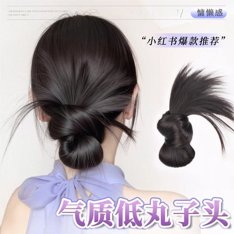 鸡毛低丸子头假发抓夹式花苞头明星同款盘发发圈发饰后脑勺假发包