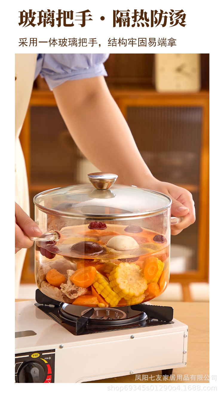 家用双耳高硼硅玻璃汤锅透明可明火电陶炉加热耐高温泡面碗炖奶锅