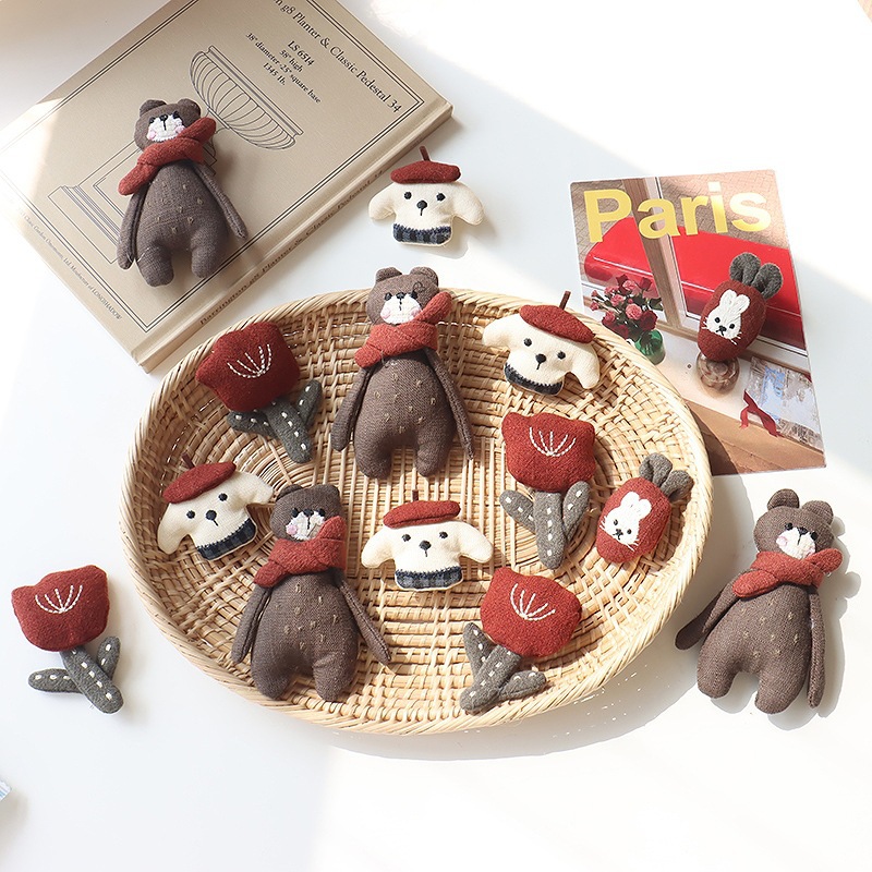 森系红色围巾熊郁金香胸针布艺萝卜兔发饰配件diy少女心配饰批发