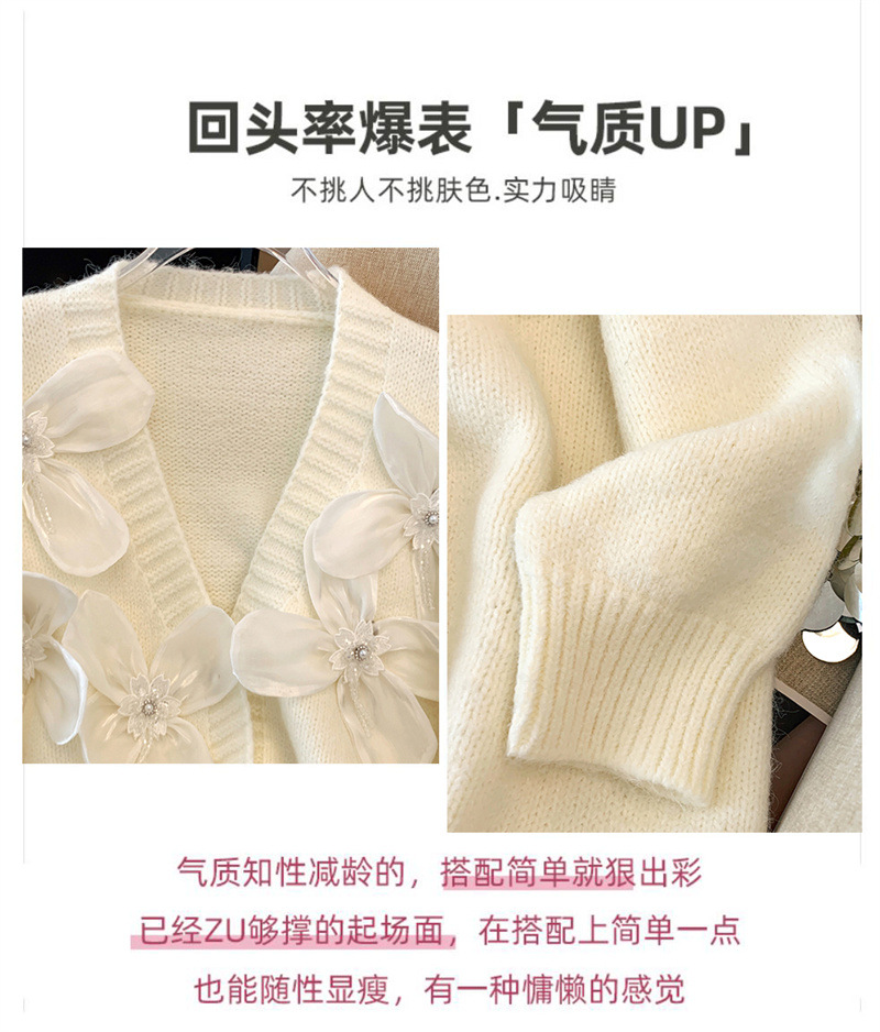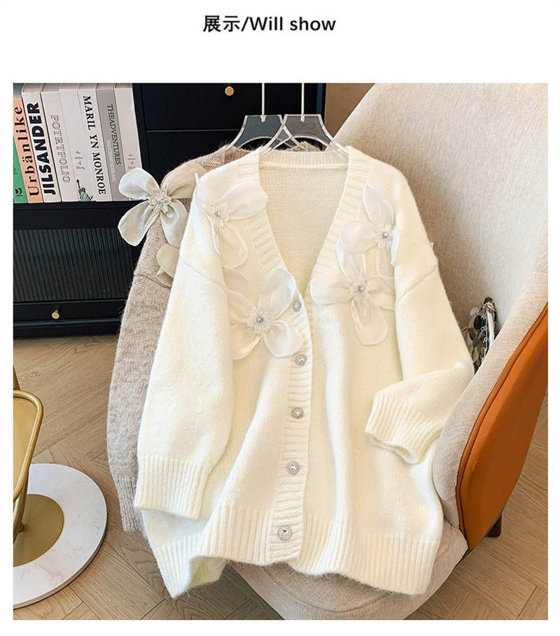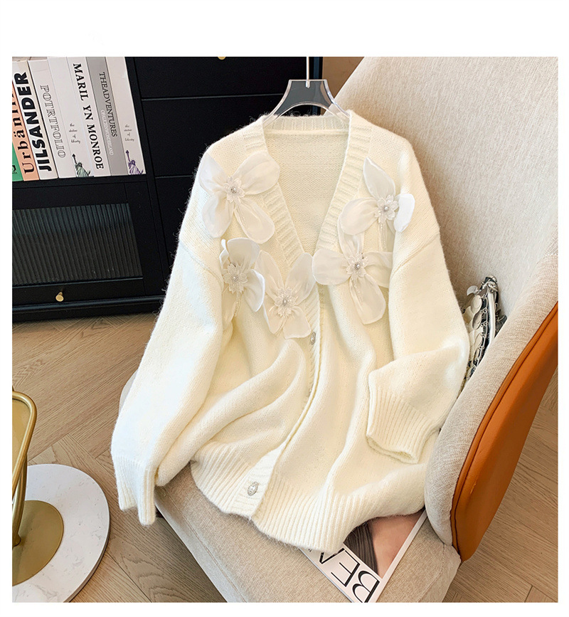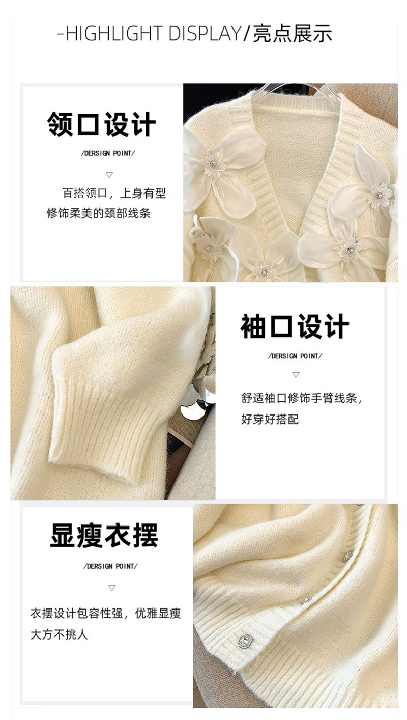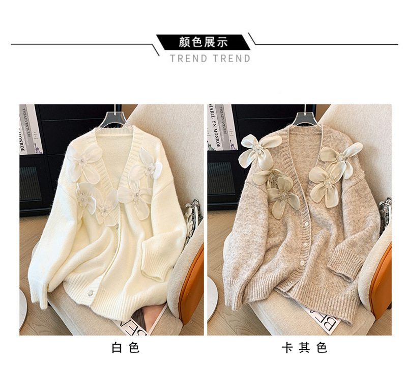 欧货2025秋冬立体花朵甜美设计感针织衫气质宽松羊绒毛衣外套开衫