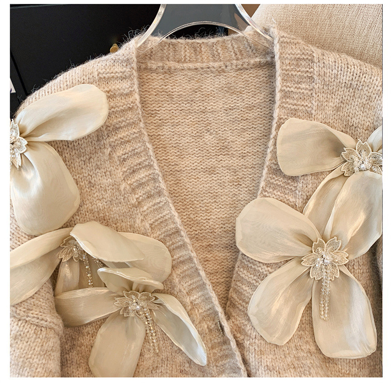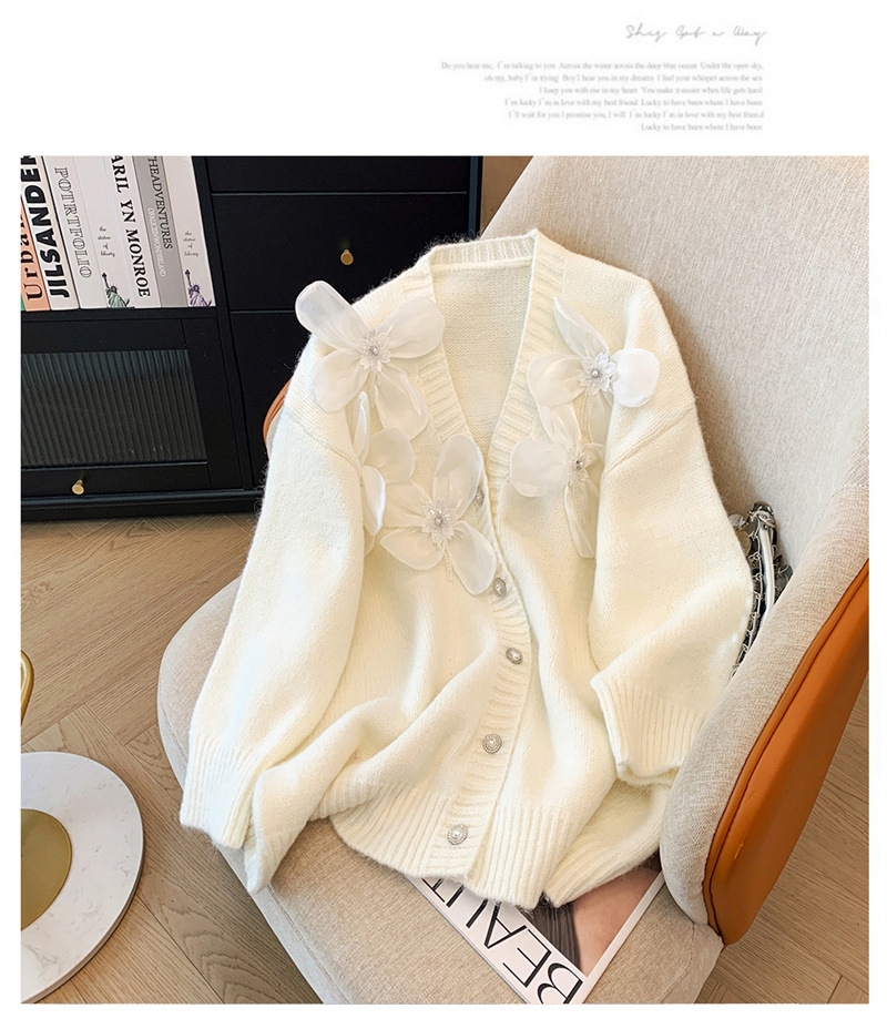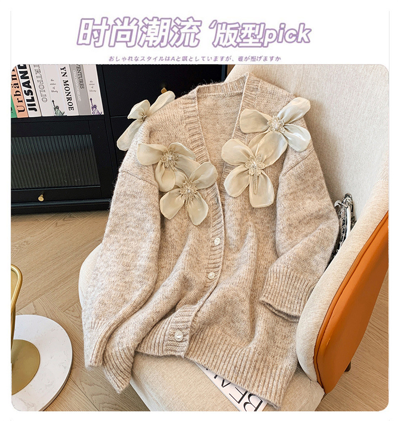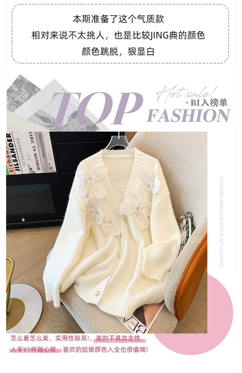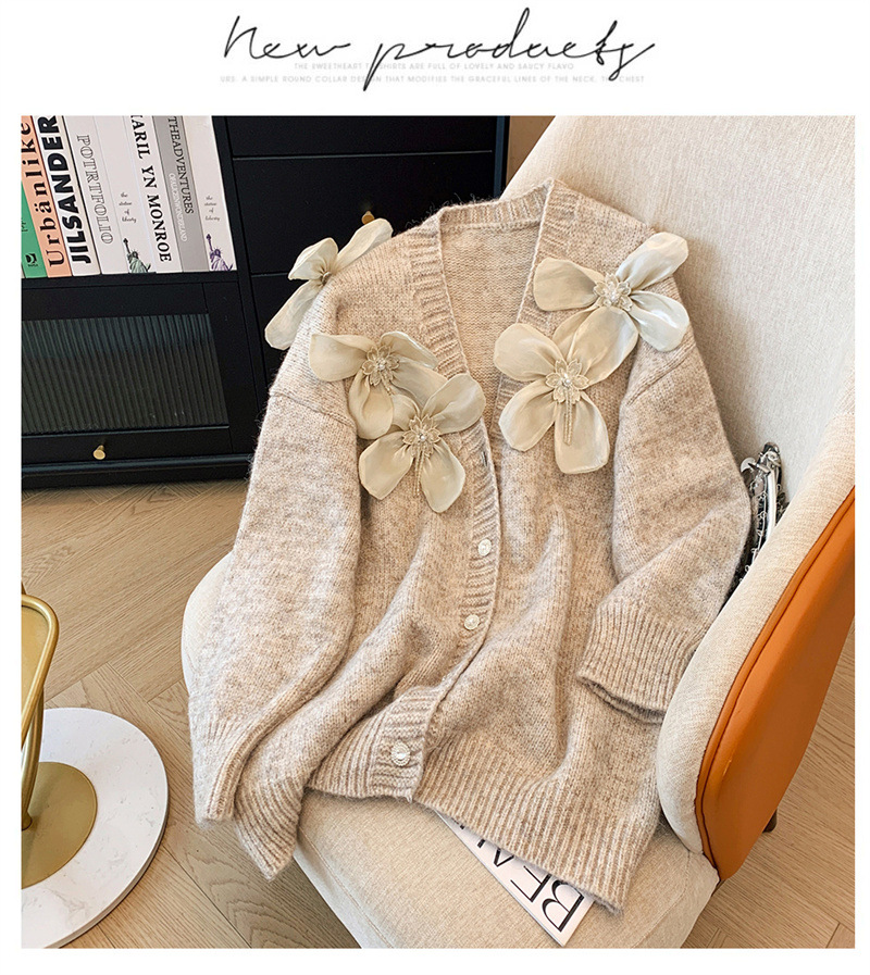 欧货2025秋冬立体花朵甜美设计感针织衫气质宽松羊绒毛衣外套开衫