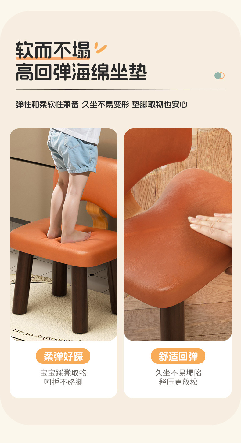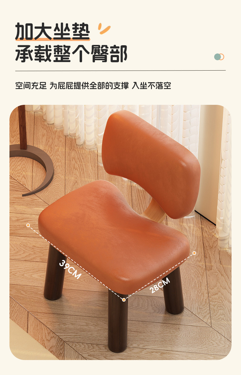 凳子小矮凳家用实木板凳客厅皮革沙发凳靠背软包小椅子木凳换鞋凳