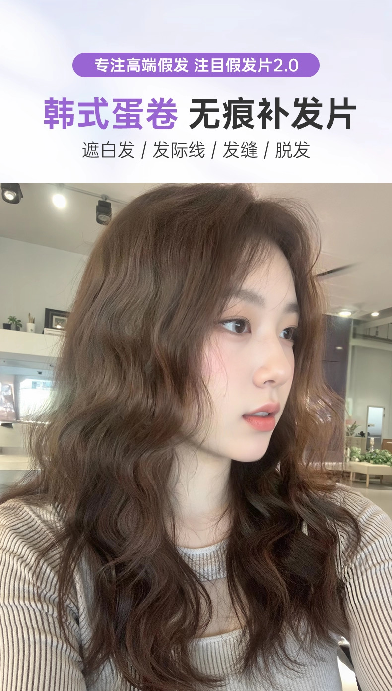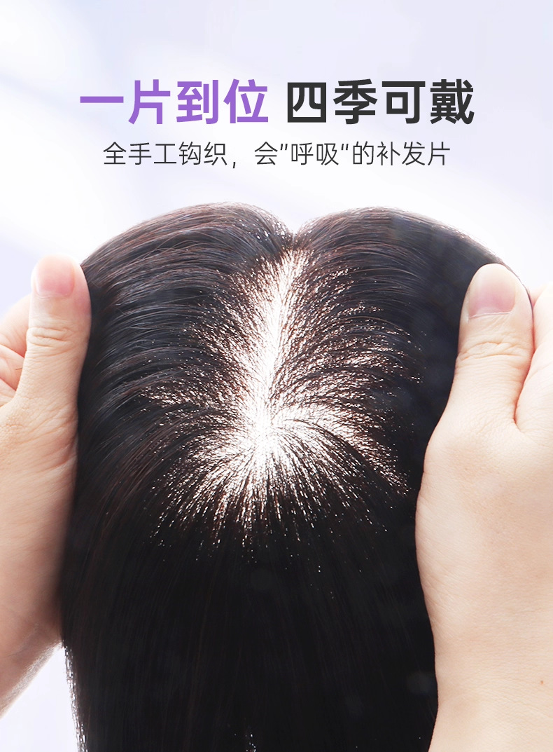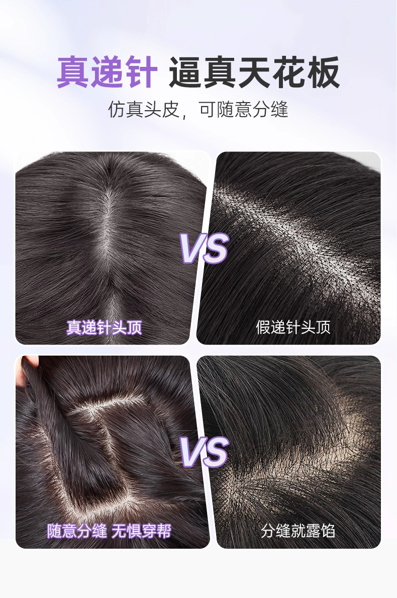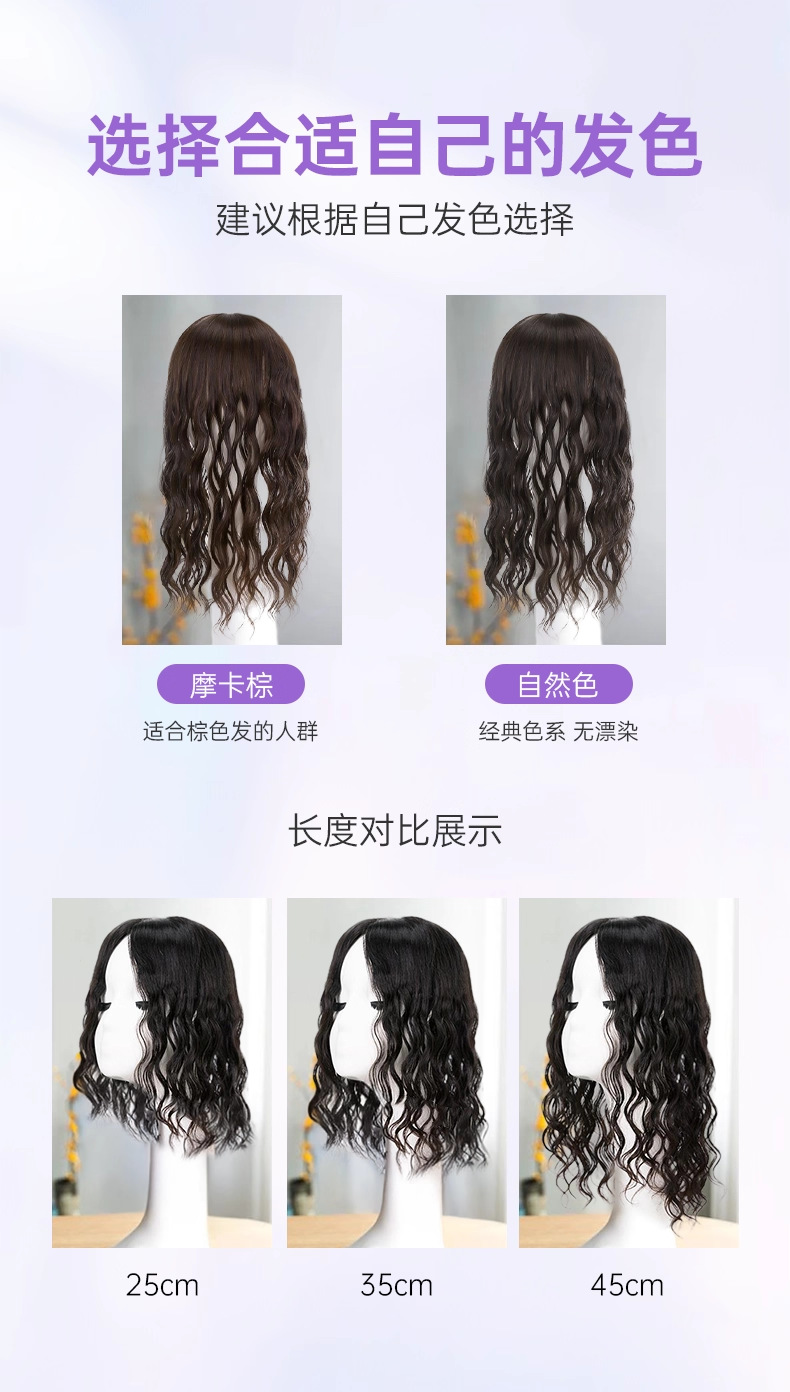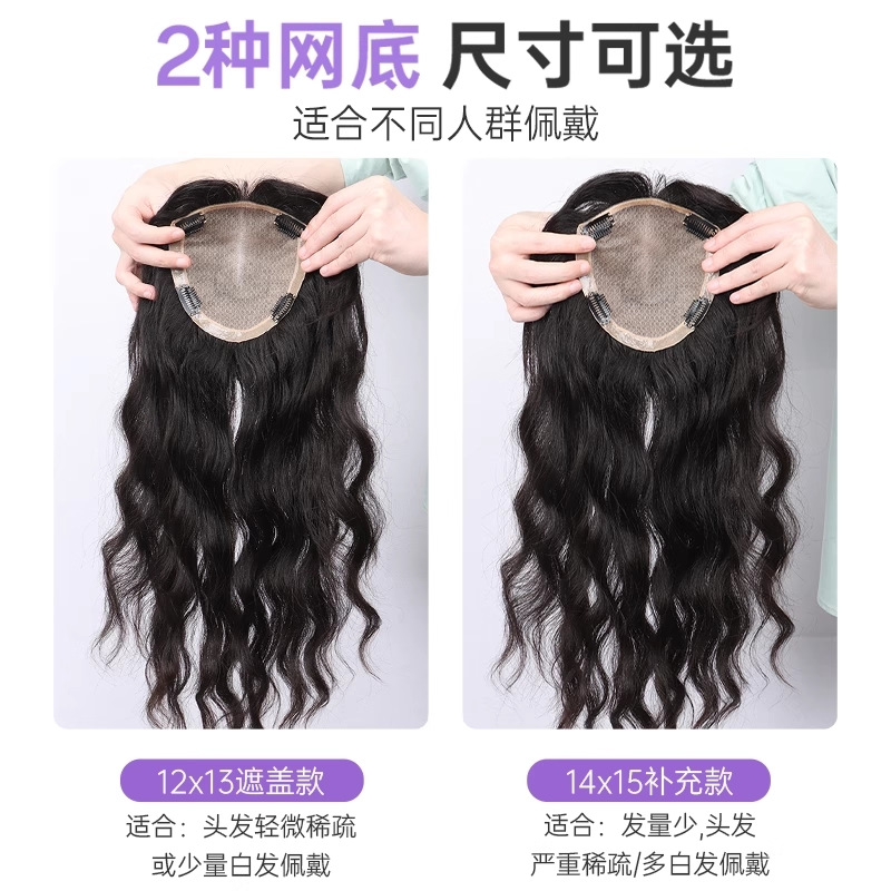假发女复古长卷发头顶假发片全手织真人发补发片遮白发增发卷发片