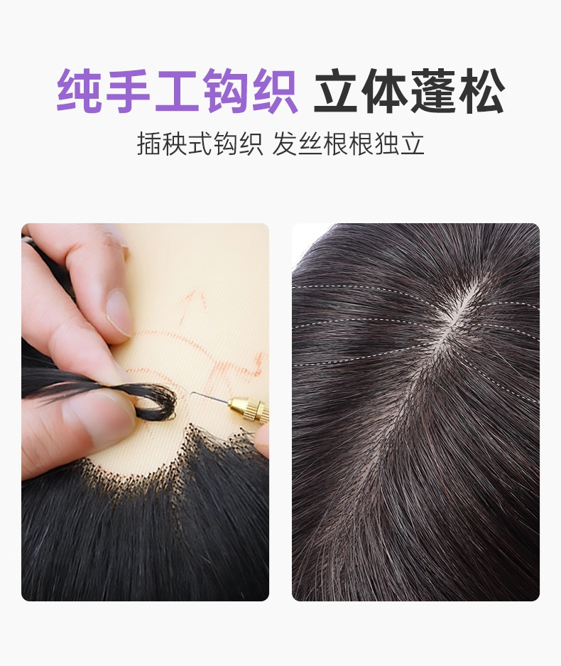 かつらの二重の針を渡して髪を補います。自然の通気性をシミュレーションします。