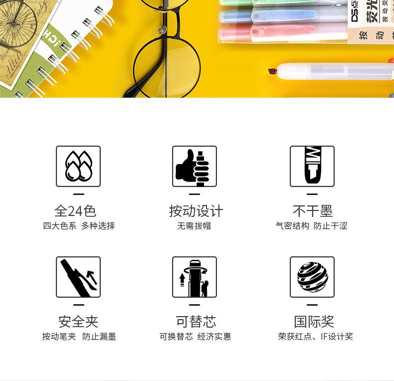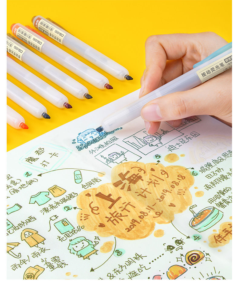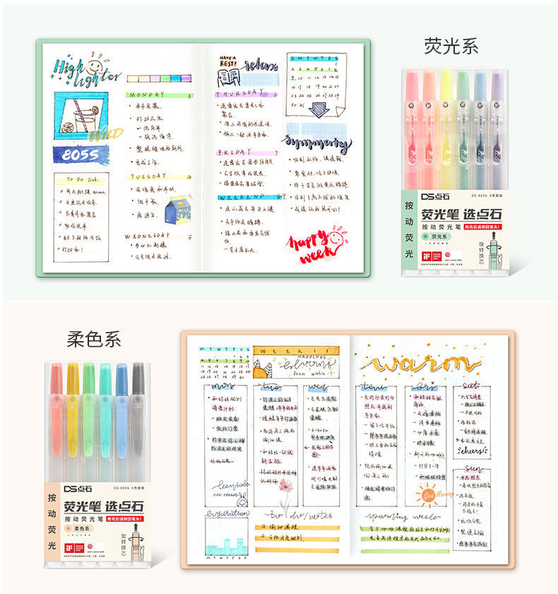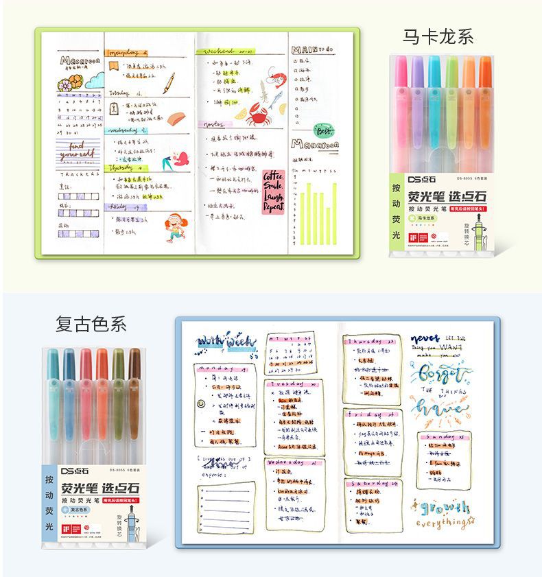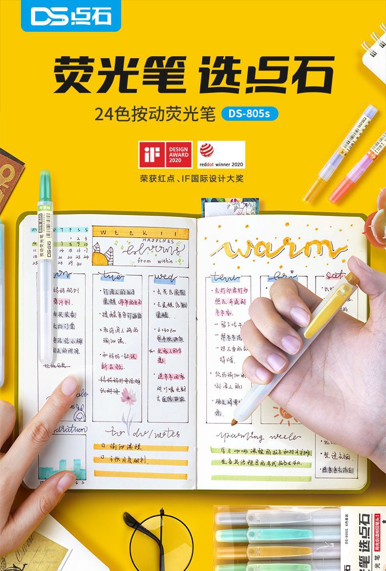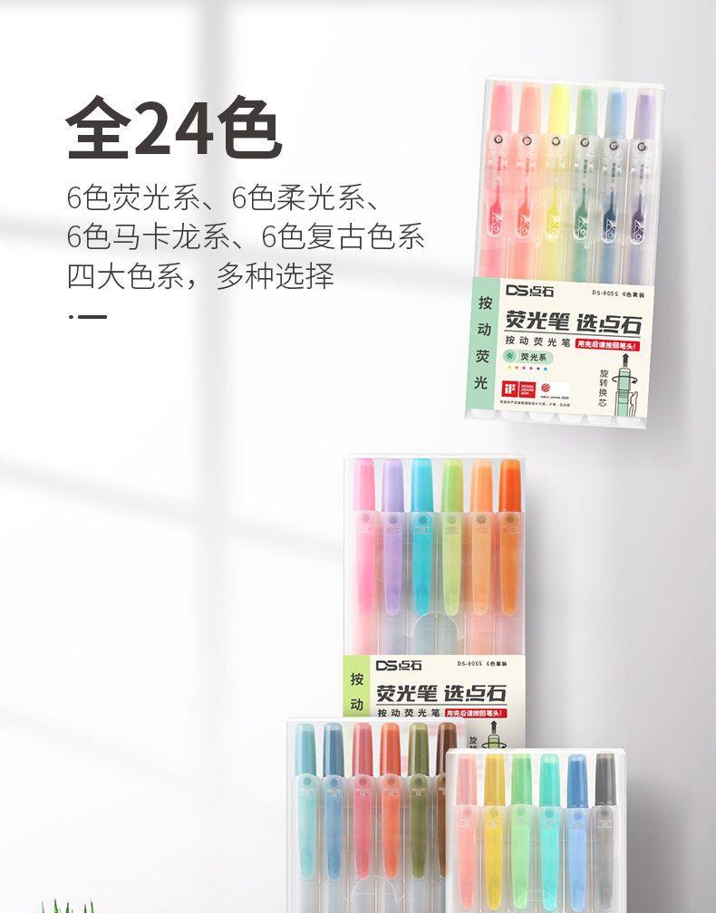 点石DS-805s按动荧光笔可换芯淡色系荧光标记笔易手控学生划重点