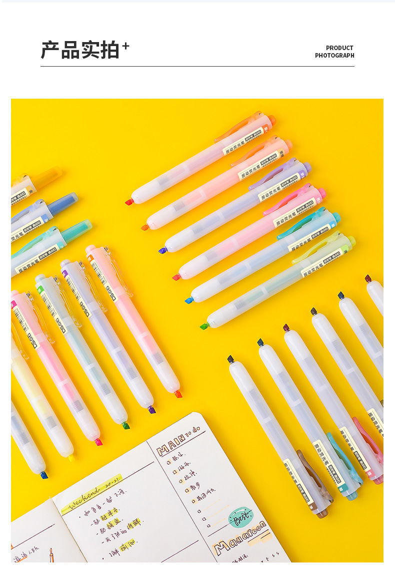 点石押し式蛍光ペン小清新シンプル学生用淡色系マークストローク重点カラーマーカー