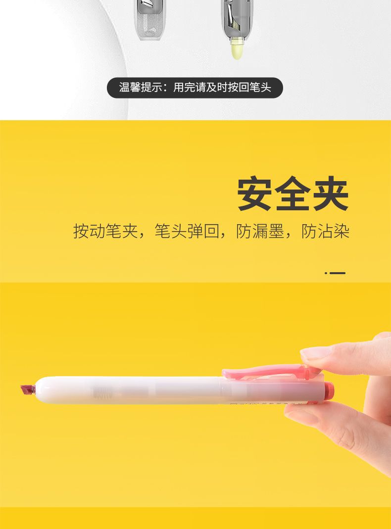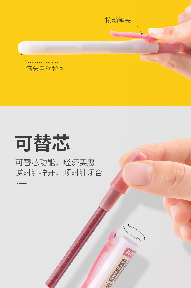 点石按动荧光笔学生彩色标记笔课堂划重点记号笔805S易手控可换芯