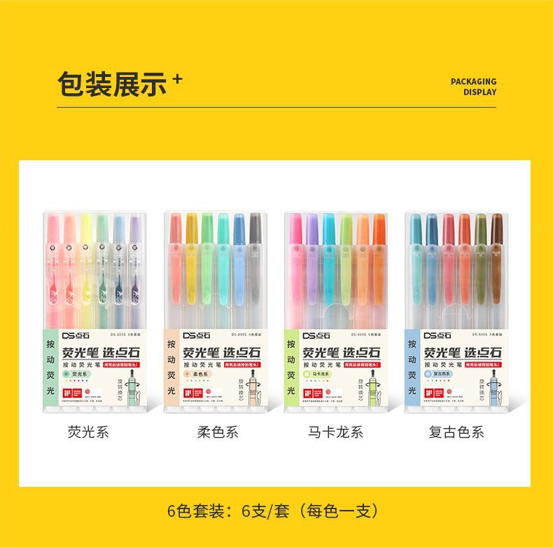 点石DS-805Sは手でコントロールしやすいです。蛍光ペンの学生は重点的にペンのカラーマーカーの文房具の卸売りを表示します。