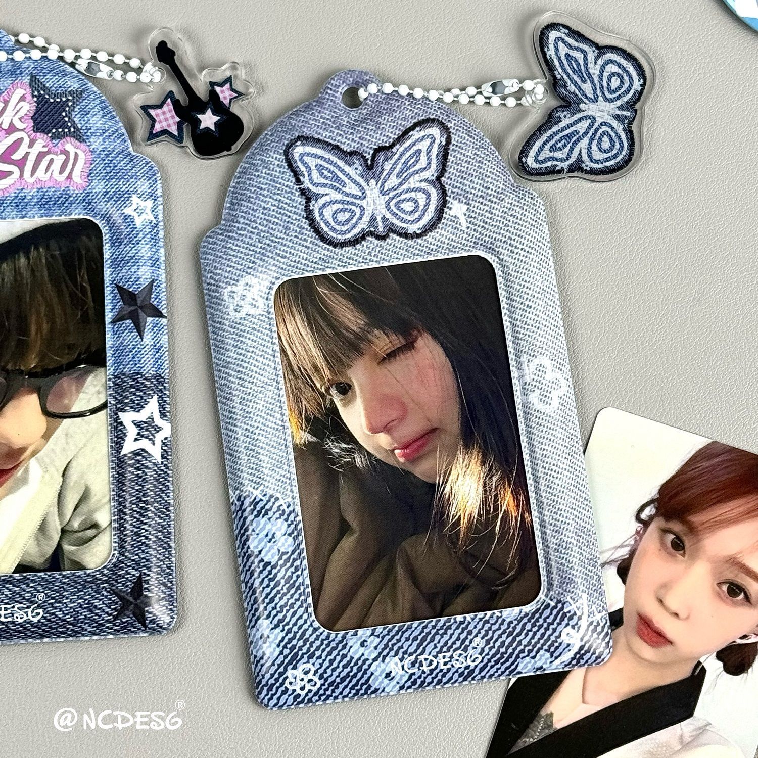 原创牛仔蝴蝶吉他摇滚pvc卡套小众设计感ins风爱豆小卡拍立得收纳