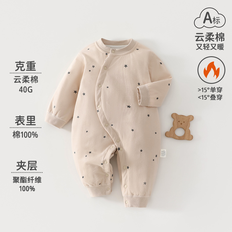 婴儿连体秋冬季新生儿保暖夹棉连体衣a类棉衣哈衣婴儿冬装外出服