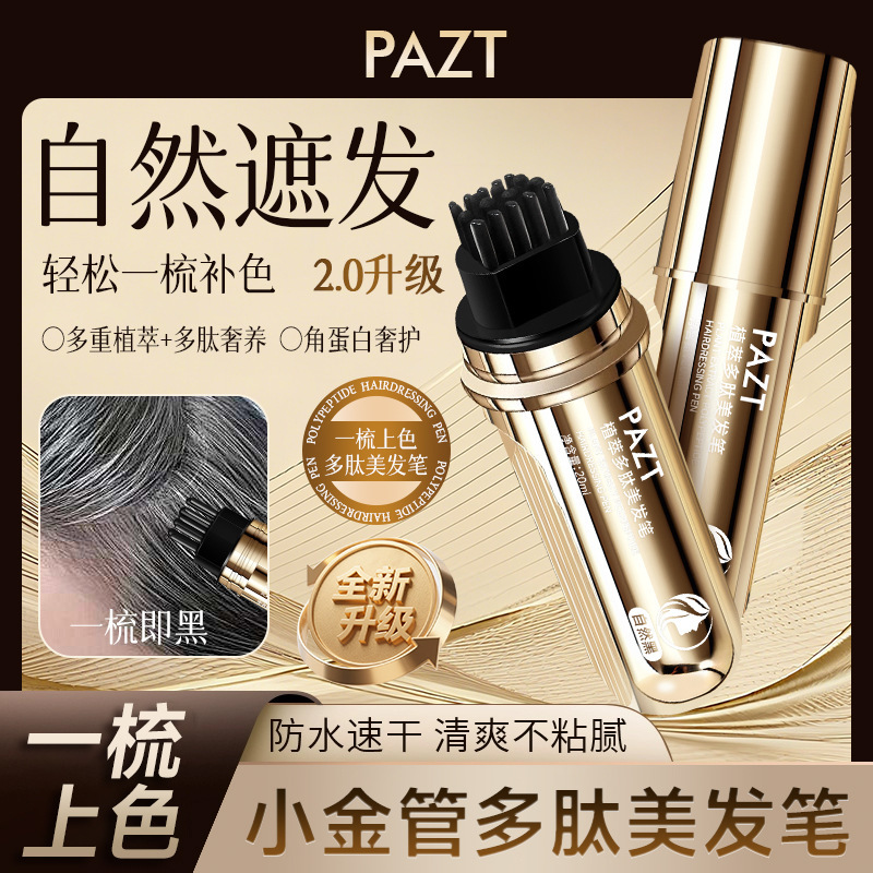 PAZT植物花香小金管多肽美发笔遮白染发一梳黑临时补色B2美发棒