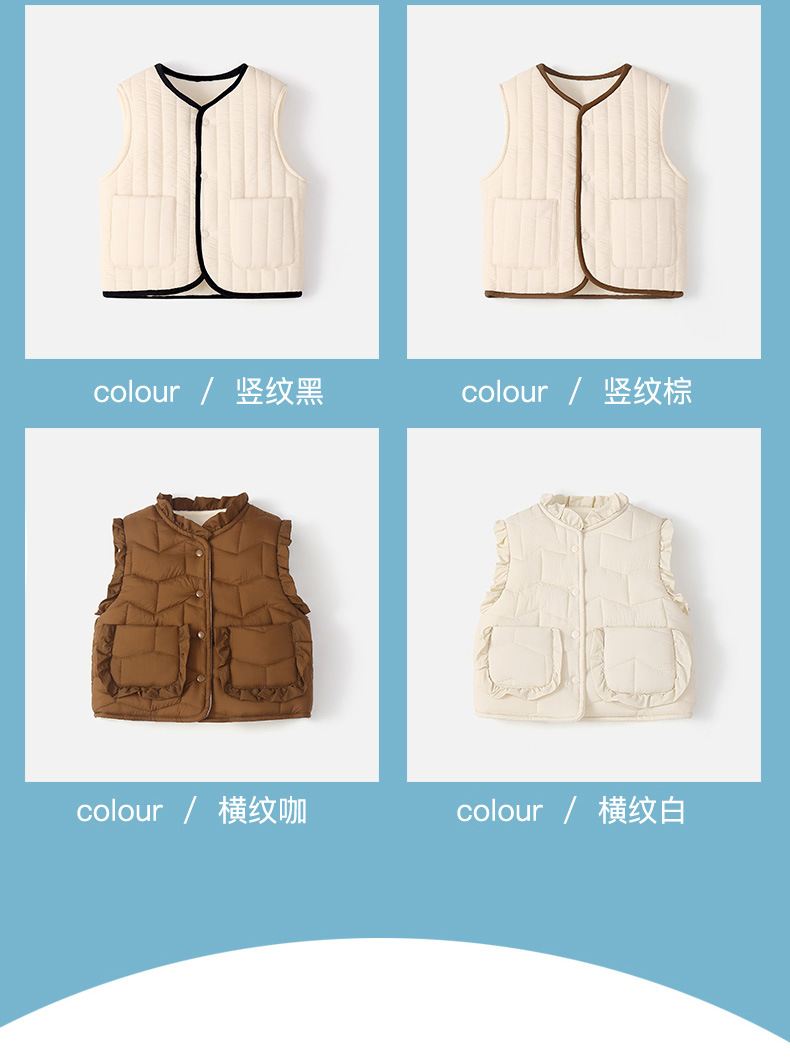2025秋冬新款男女儿童羽绒棉服马甲背心百搭中大童棉衣棉服保暖
