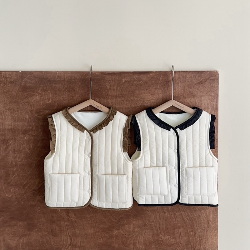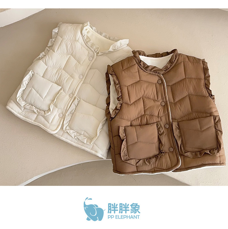 2025新款秋冬婴幼儿棉马甲女童保暖坎肩中小童棉贴身背心荷叶边