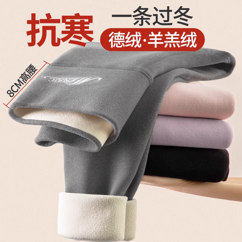加绒加厚德绒打底裤女秋冬羊羔绒内外穿高腰高弹保暖秋裤东北棉裤