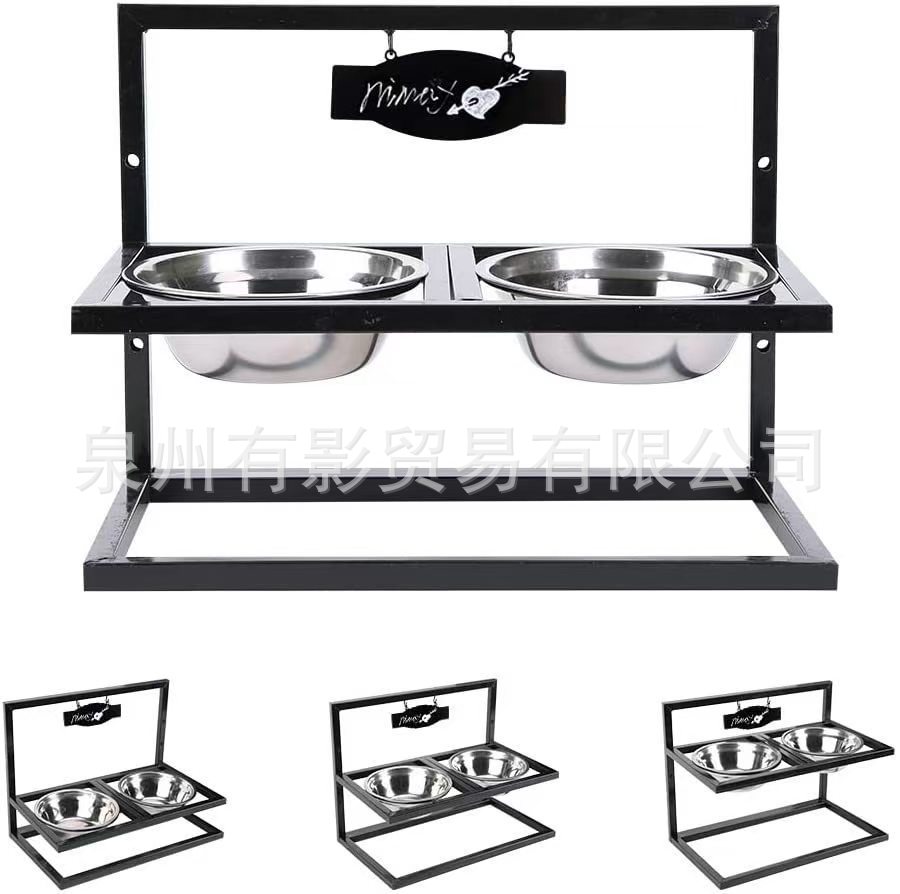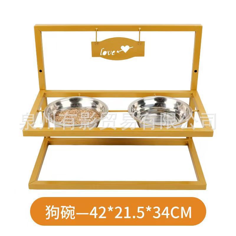 亚马逊铁艺宠物碗盆架不锈钢盆架大中小型狗盆碗架可拆卸高度可调