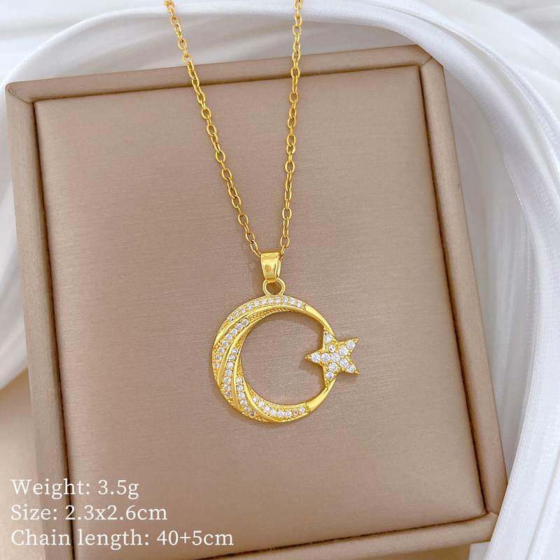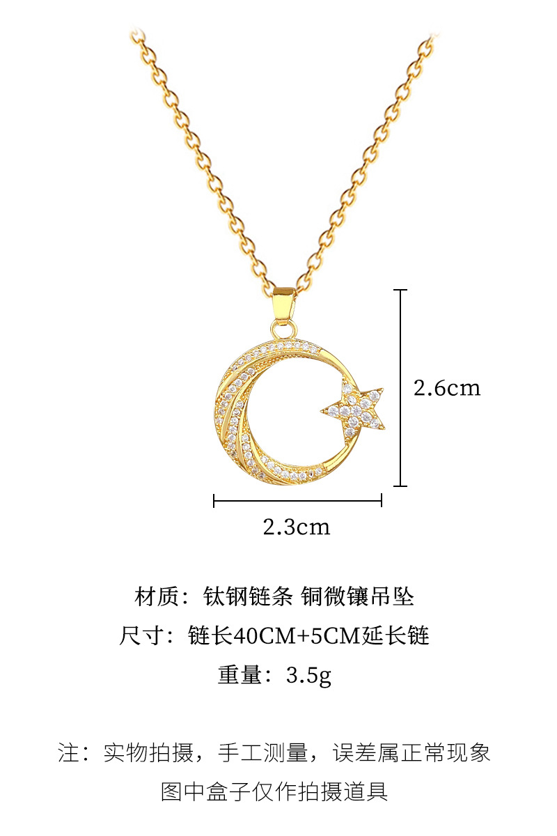【钛钢】 星星月亮锆石轻奢气质华丽满钻项链女百搭锁骨链钛钢链