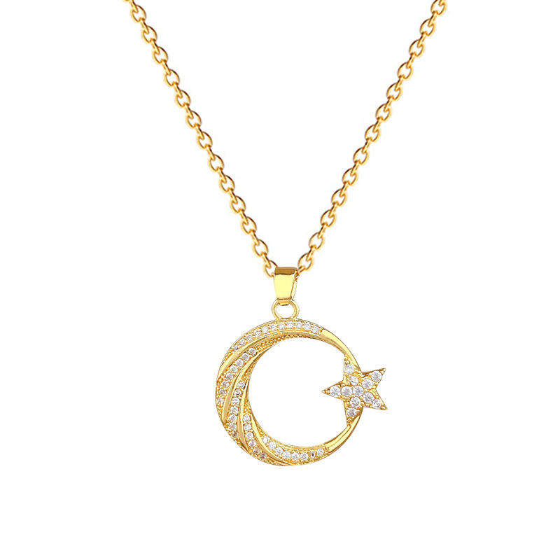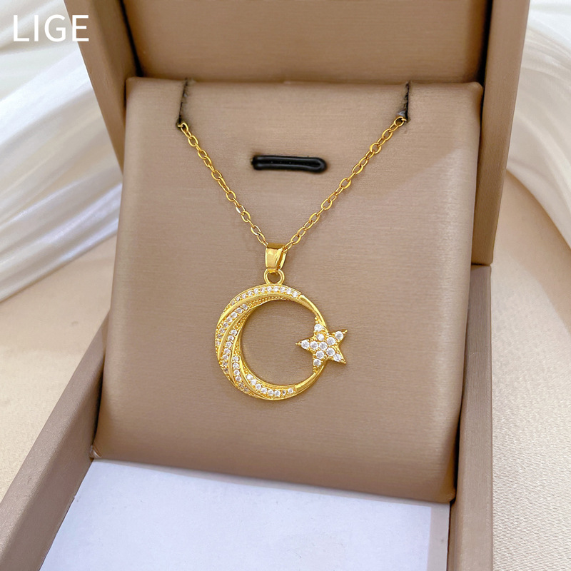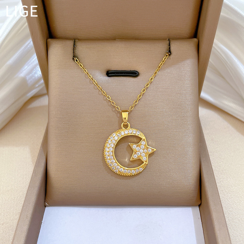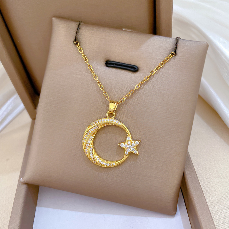 【钛钢】 月亮星星轻奢风气质华丽满钻项链女百搭锁骨链钛钢链