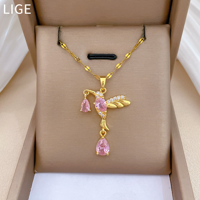 【钛钢】燕子携珠宝宫廷风气质华丽满钻项链女百搭锁骨链钛钢链