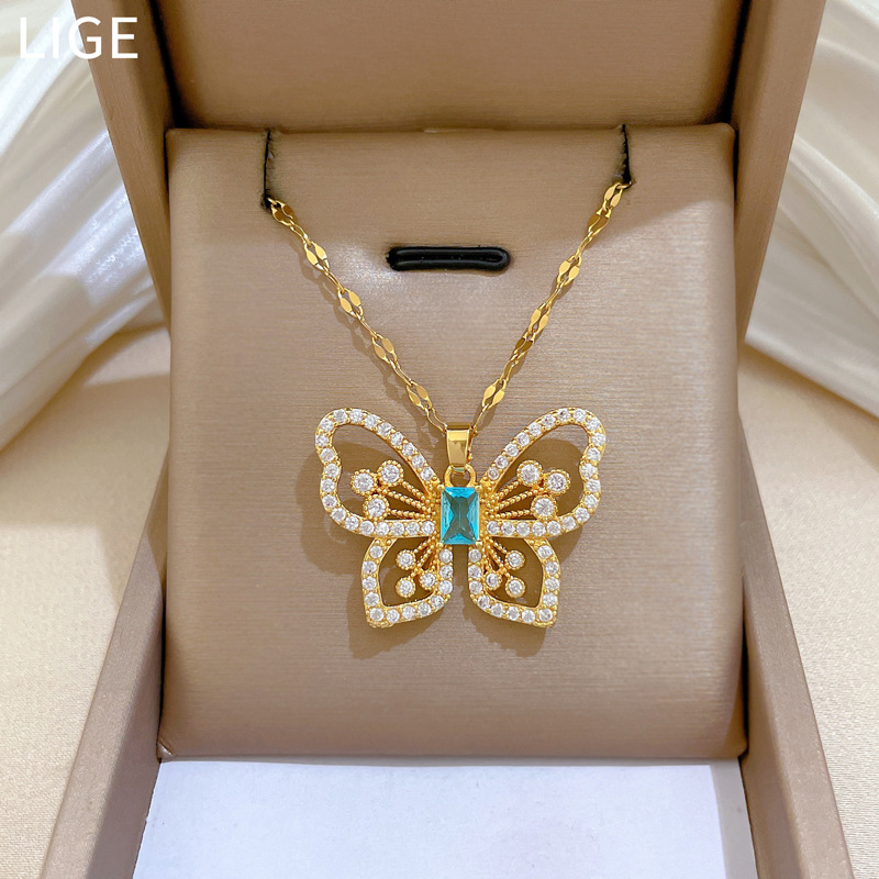 【钛钢】 缕空蝴蝶重工轻奢气质华丽满钻项链女百搭锁骨链钛钢链