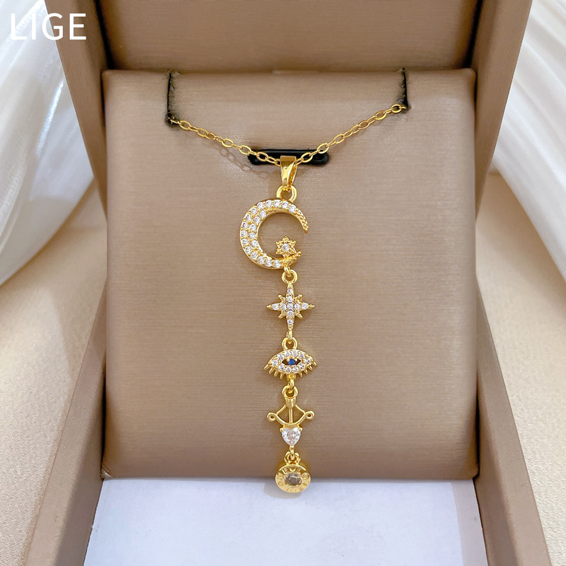 【钛钢】流苏星星月亮气质华丽满钻项链女百搭锁骨链钛钢链微镶