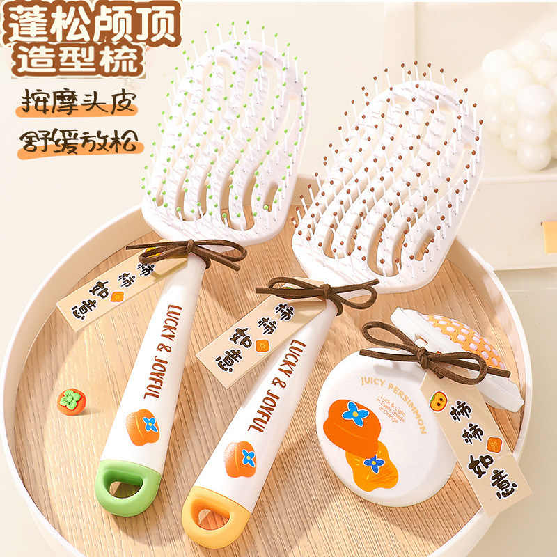 卡通柿柿如意顺发蓬松排骨梳气垫梳女士长发家用折叠便携气囊镜梳