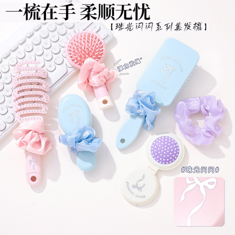 跨境珠光闪闪系列高颜值马卡龙学生家用美发梳气垫梳造型气囊梳