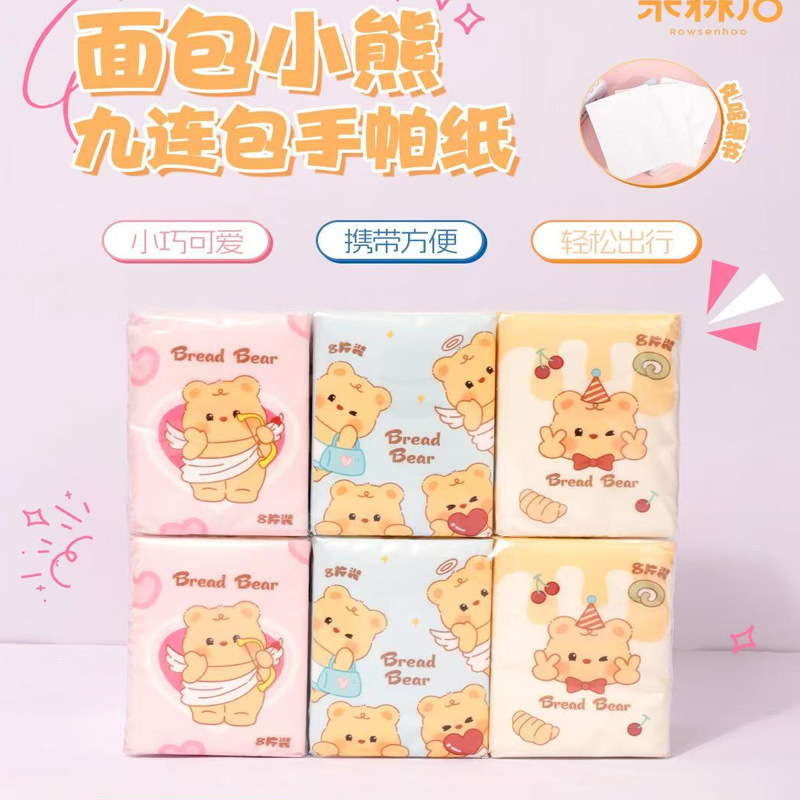 漫画 9 パックプリントハンカチ紙家庭用屋外ポータブルティッシュかわいい学生小さなパックナプキンフェイシャルティッシュ