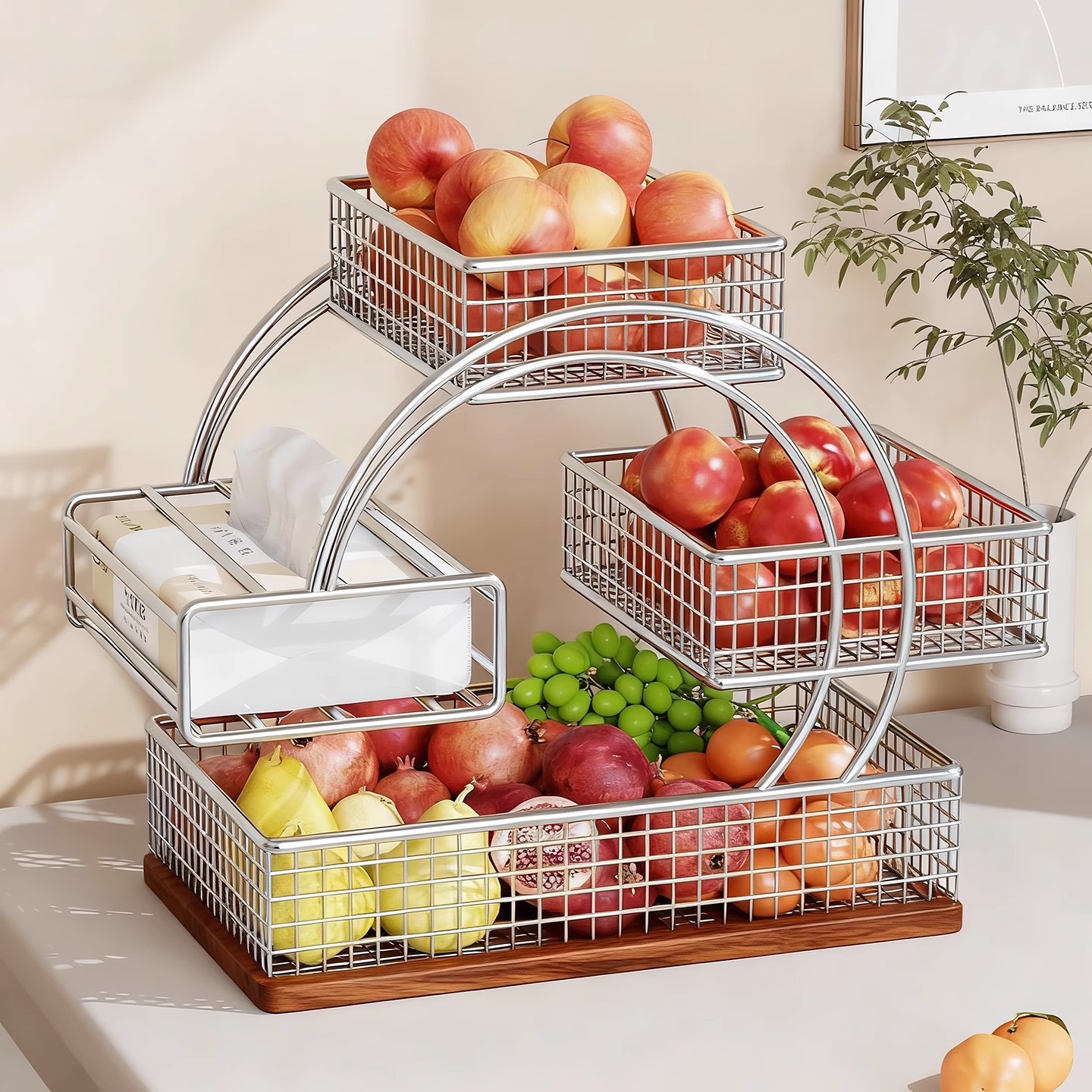 桌面置物架放水果神器茶几整理架果篮收纳筐多层纸巾架杂物储物篮
