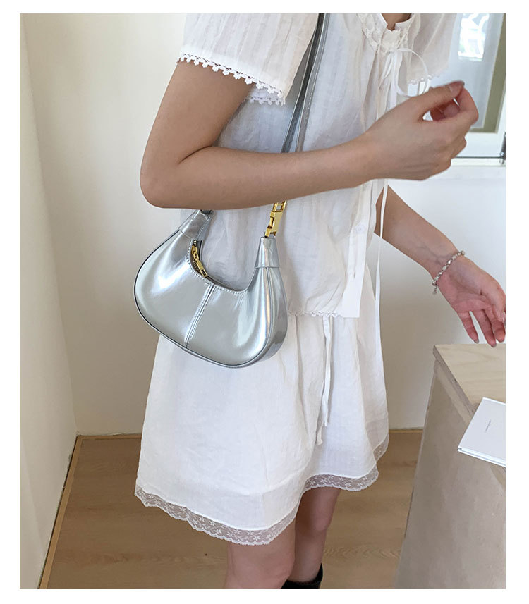 跨境2025质感大容量简约纯色新款时尚潮腋下手提单肩月牙斜挎包女