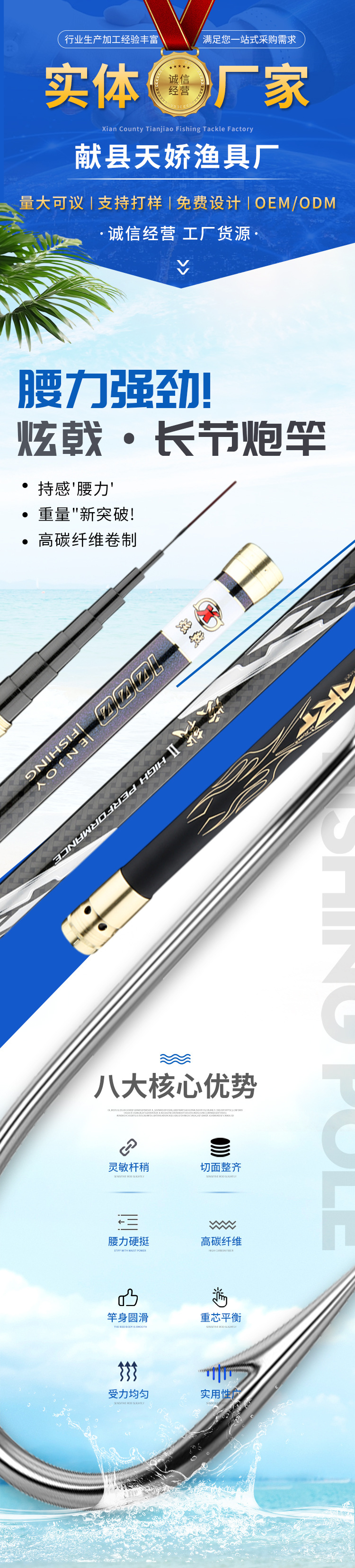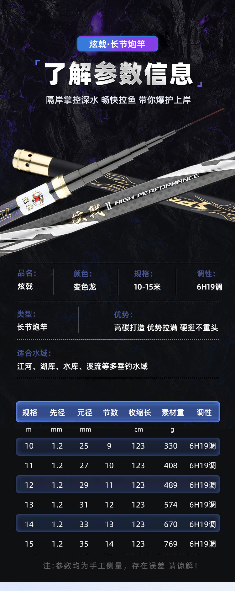 炫戟长节炮竿10-15米高碳长节炮竿超硬19调米碳素超轻6H钓鱼竿