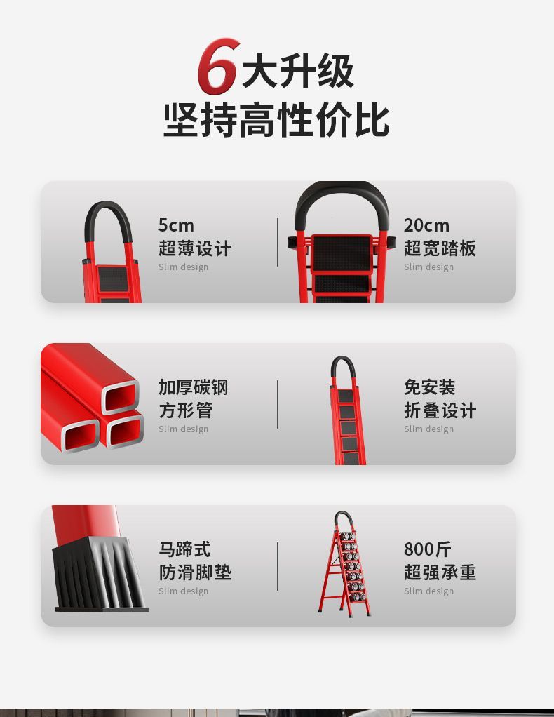 超轻梯子家用折叠加厚多功能碳钢爬梯室内稳固家用架方形管人字梯