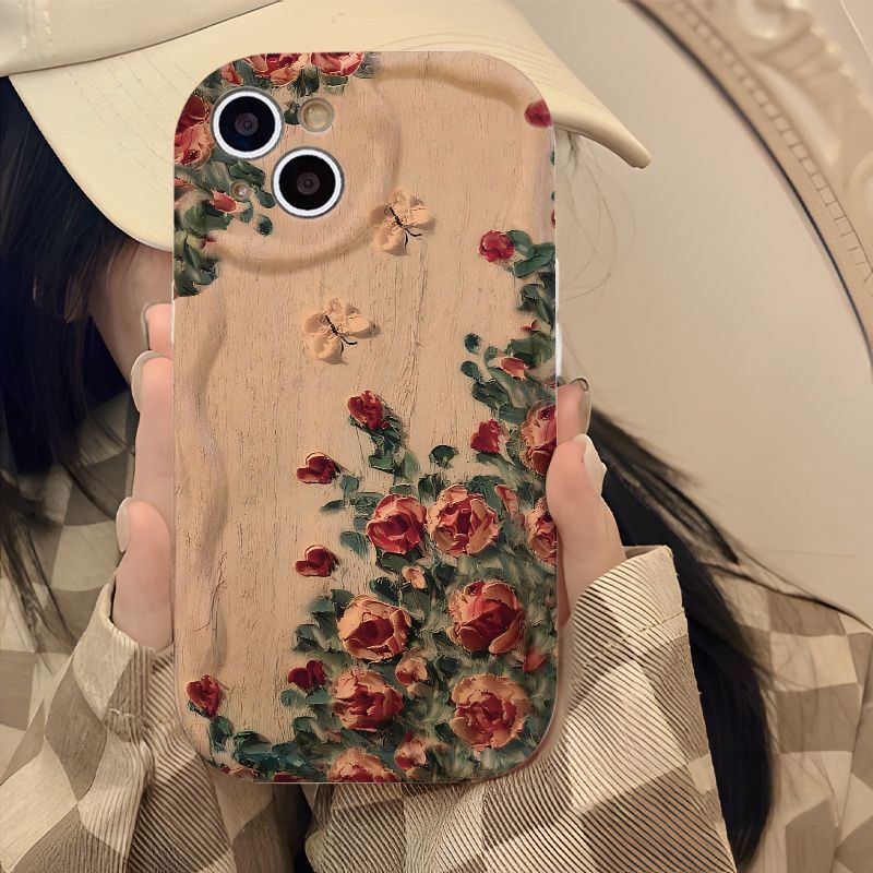满墙玫瑰适用苹果12PROMAX奶油纹手机壳iPhone15文艺14软壳13新款